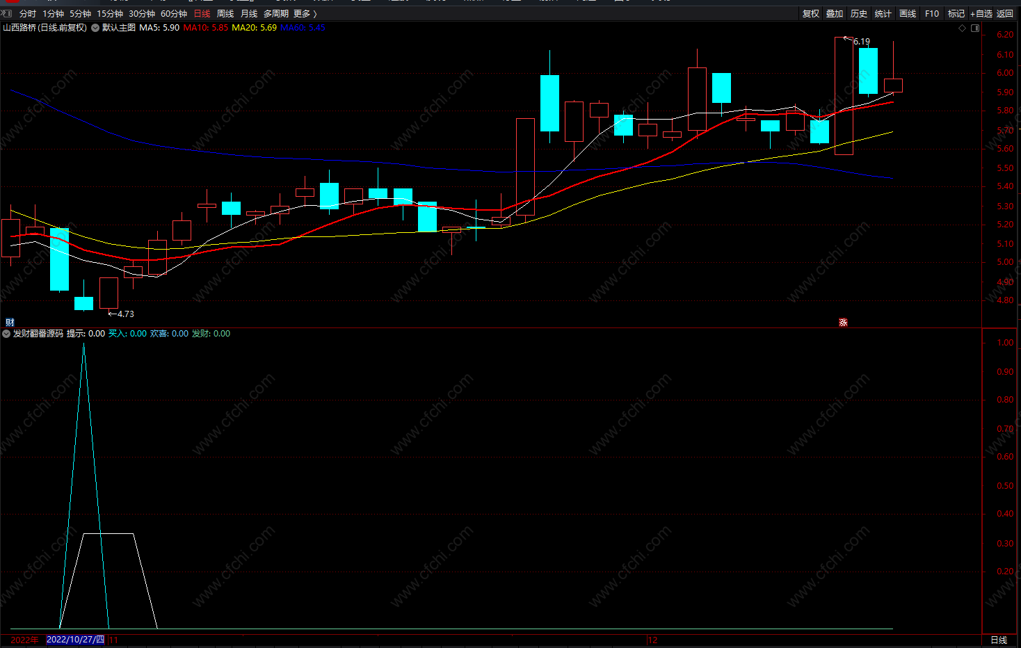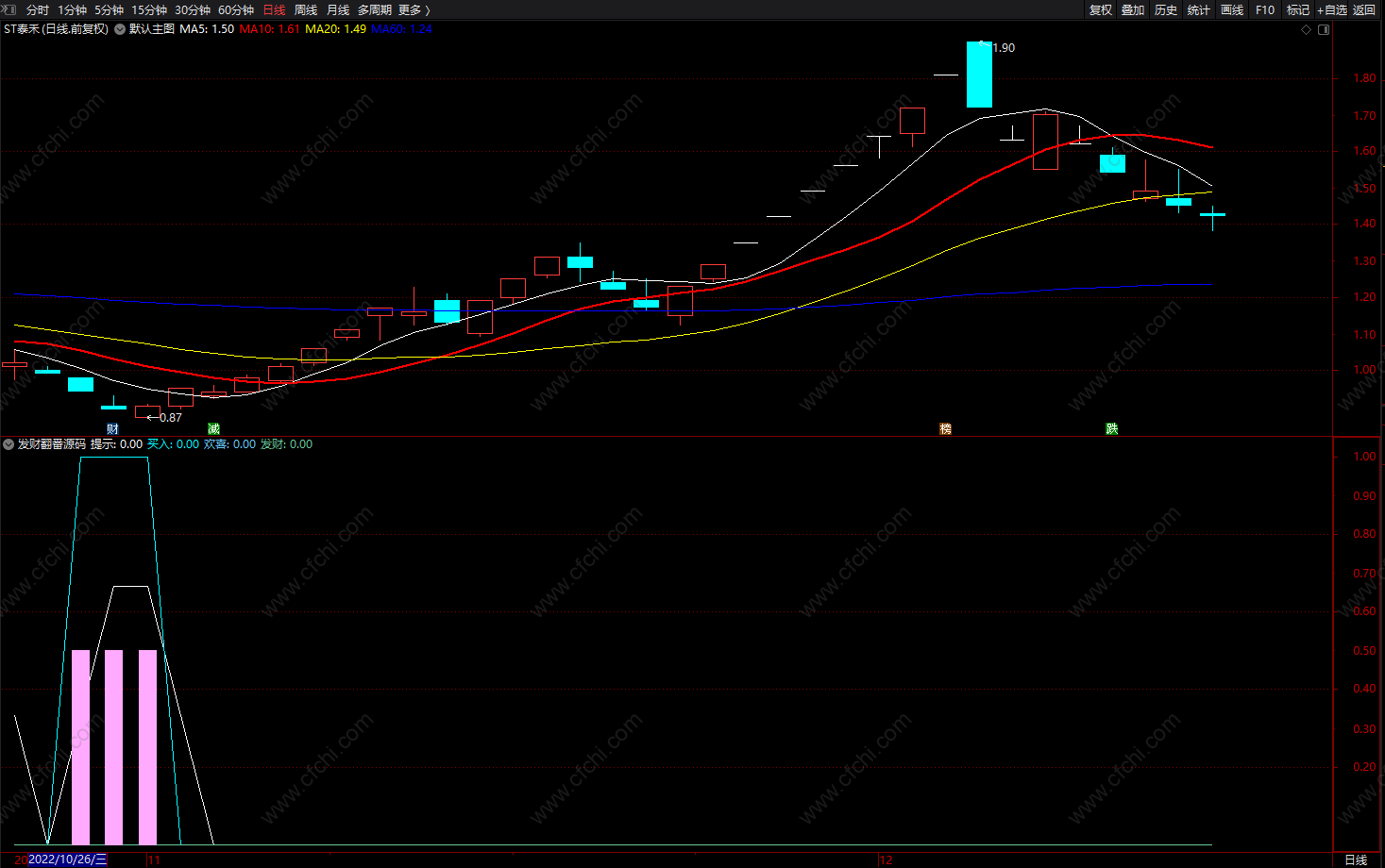 发财翻番源码 通达信股票必涨的买入公式 副图 源码