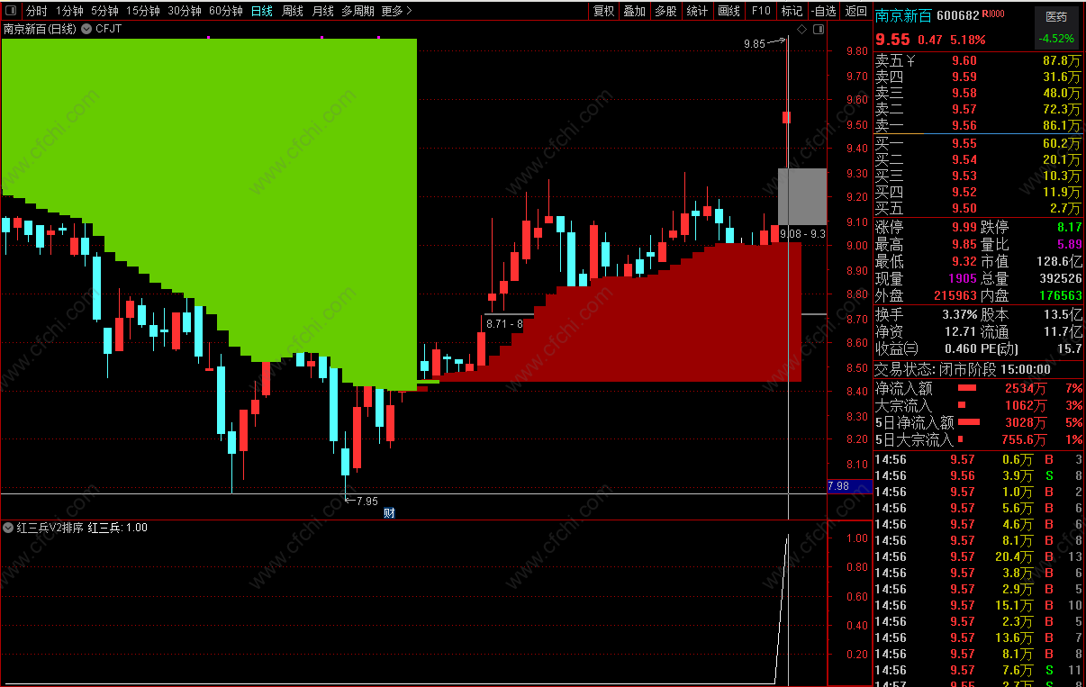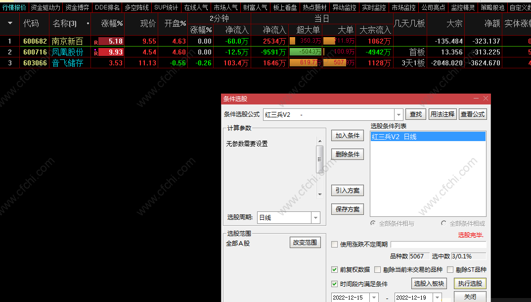 通达信红三兵V2排序选股指标,早盘竞价捕捉强势票,源码分享