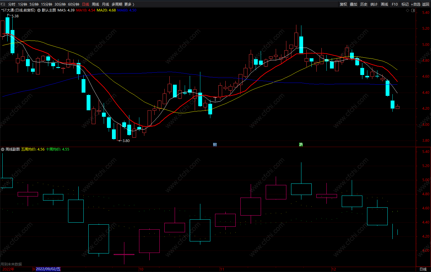 (周线均线指标公式 通达信五周、十周均价 源码 无未来 副图)