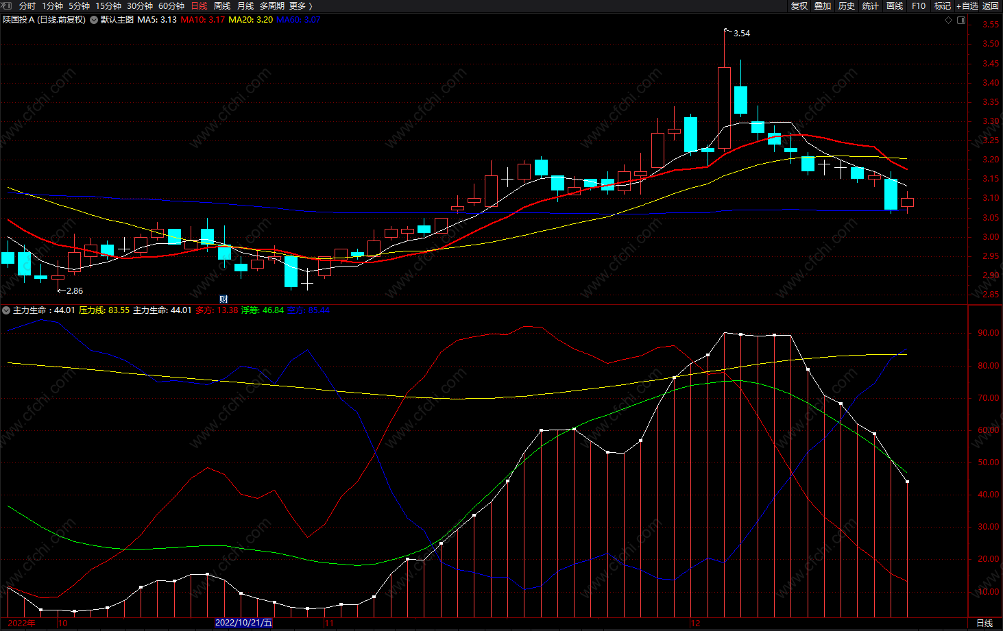 主力生命: WINNER(MA(CLOSE,5))*100,COLORWHITE;