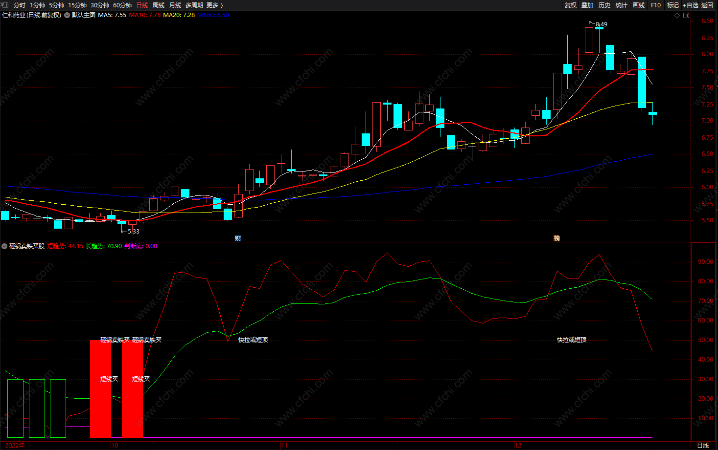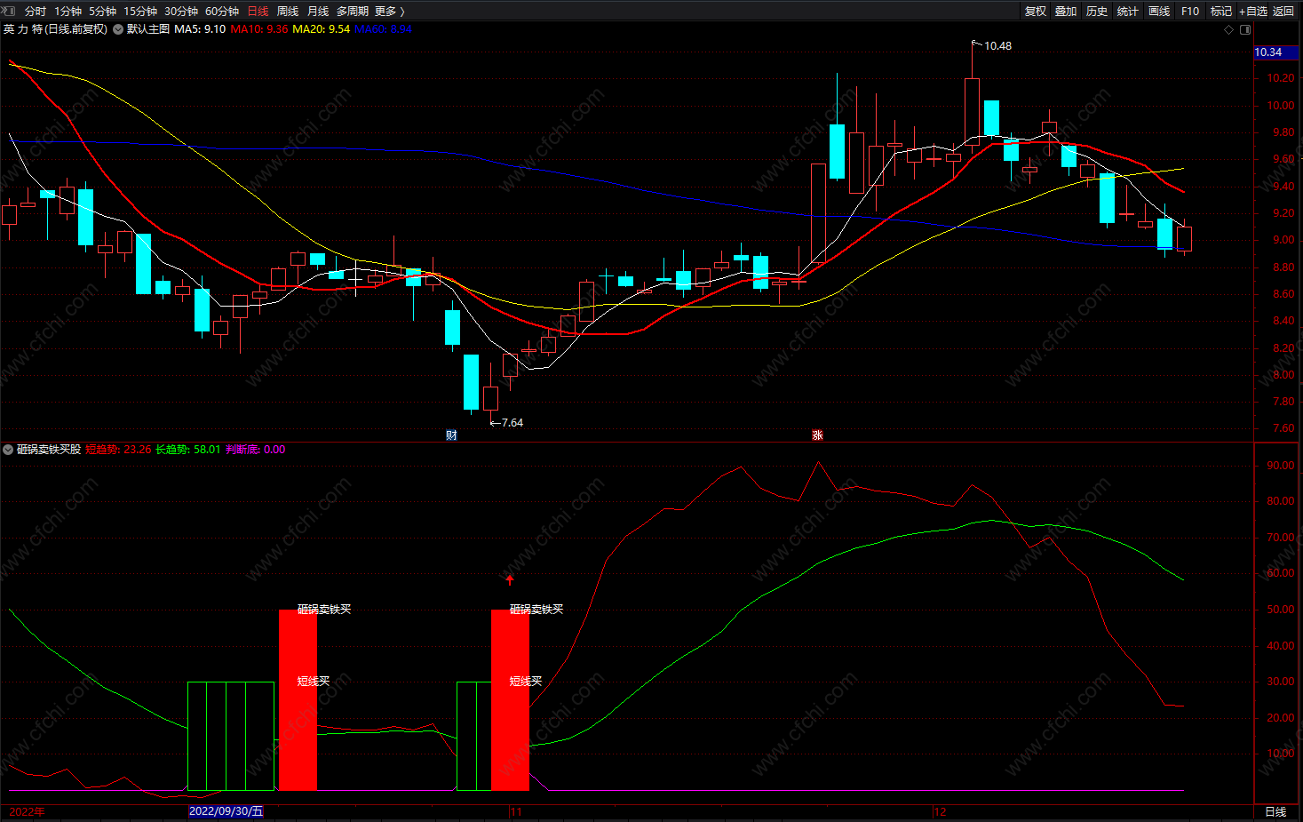 砸锅卖铁买股 通达信极简趋势看盘指标公式 副图 源码