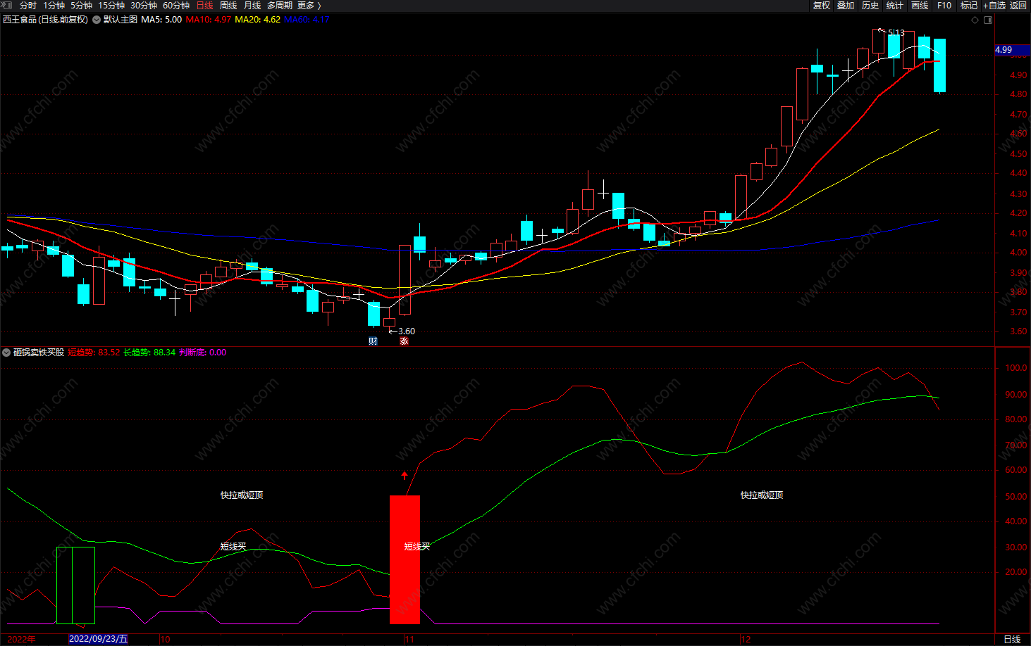 (砸锅卖铁买股 通达信极简趋势看盘指标公式 副图 源码)