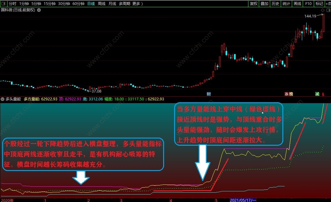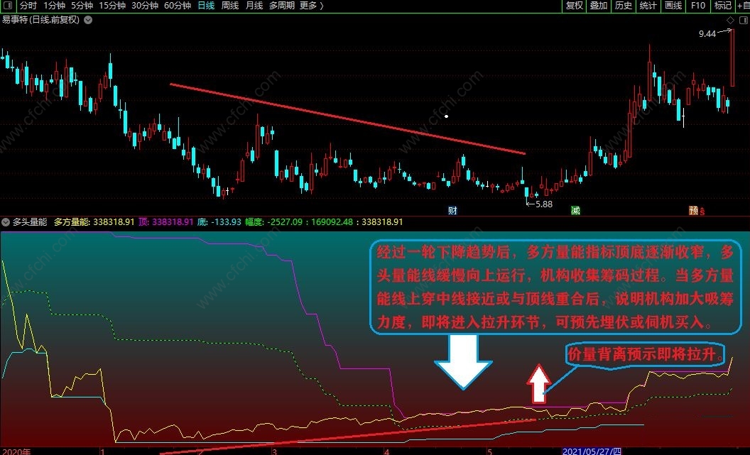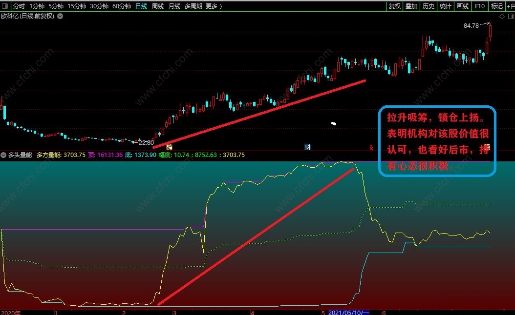 (通达信多头量能副图指标,揭示个股主力机构吸筹,洗盘、拉升、出货全过程!)