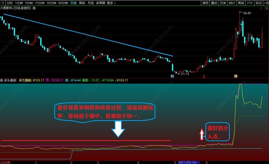 刚下载此指标使用者,由于还未领悟和熟练掌握,尽量找与指标相符的个股进行走势比对。最好找底部个股,会减少失误。
