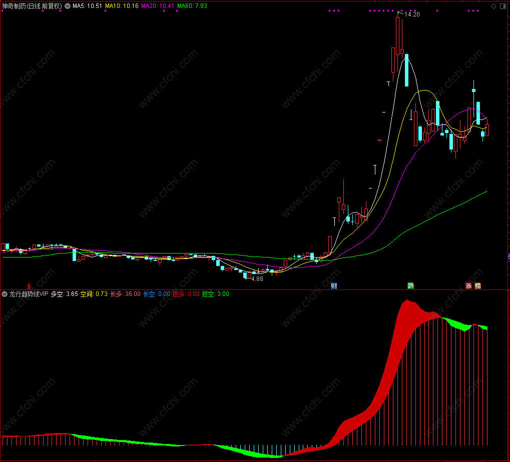 (通达信超牛更新版龙行趋势线VIP副图指标,红买绿卖、红持绿抛源码分享!)