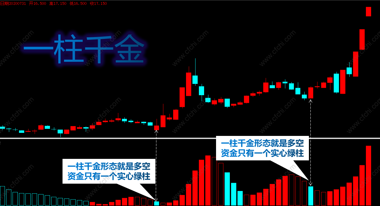 多空资金精准买点之一柱千金形态