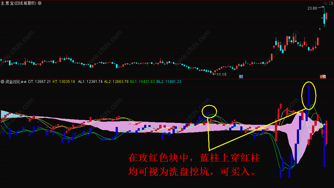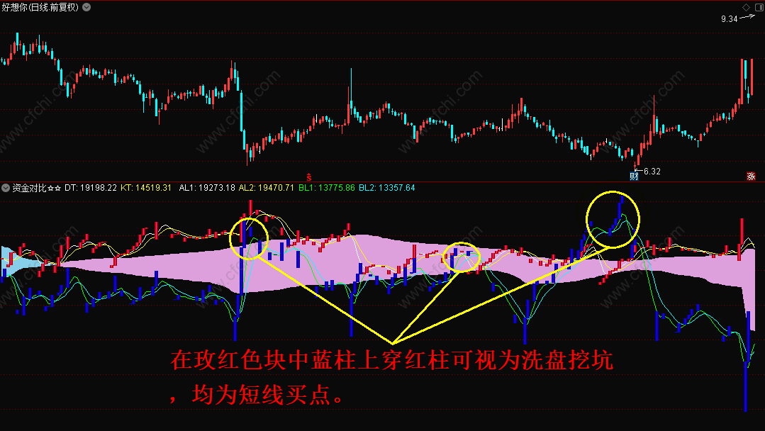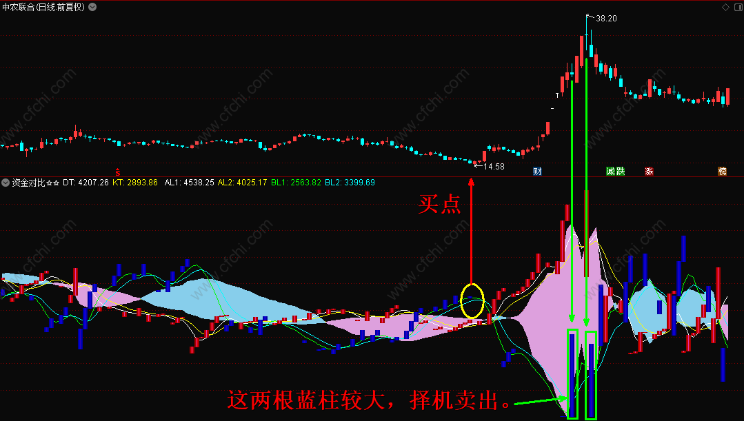 (通达信资金对比副图指标,供买进股票时参考,可信程度较高!)
