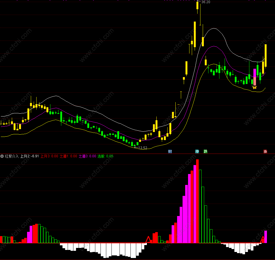 (通达信【红紫介入】副图指标,一个做波段不错的看盘工具,源码分享!)
