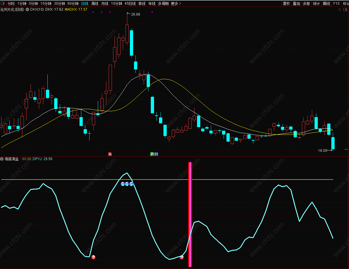 财富池指标公式网(www.cfchi.com)提醒您:指标公式是通过数学逻辑角度编写而来,仅是股票分析环节中的一个辅助工具,对股票选股效率和分析便捷上起到一定的作用,股市是具有不确定性和不可预测性的,请正常对待和使用指标公式!