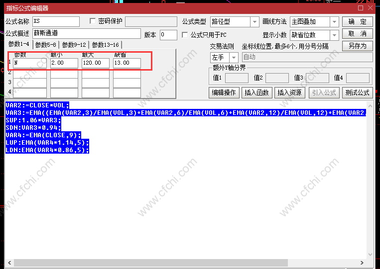 薛斯通道指标主图代码:(通达信一般系统自带的,没有的话,可以从这里复制过去)