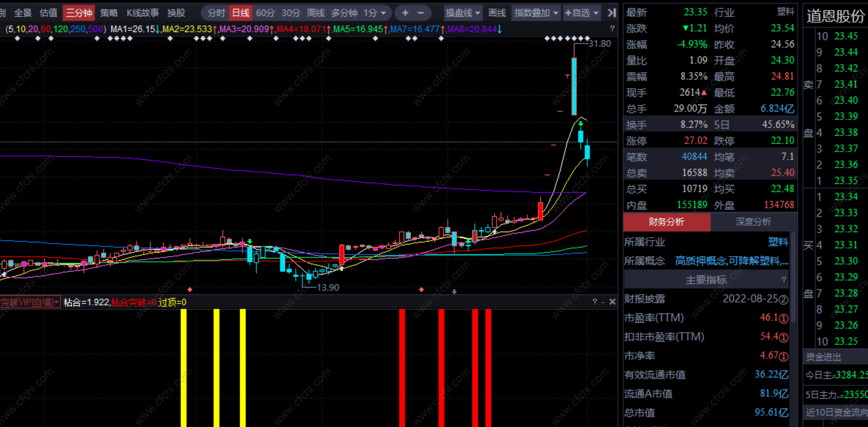 (【益盟操盘手】趋势突破副图指标,红色柱体出现意义更佳源码分享)