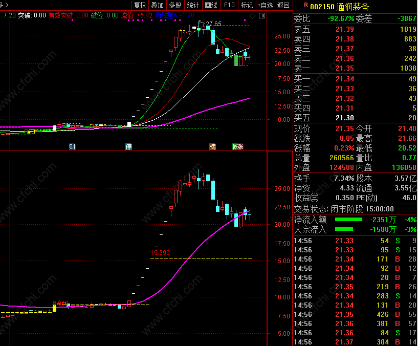(通达信【启动划线】副图指标,强势突破自动划线源码分享)