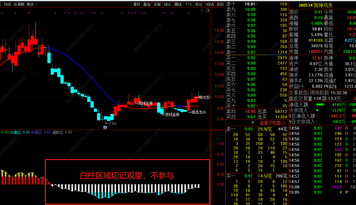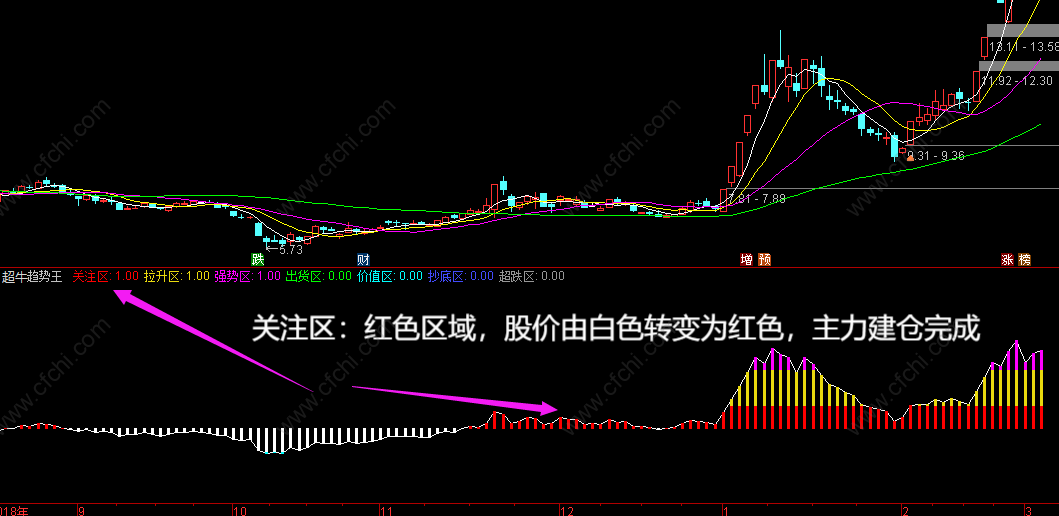(通达信《超牛趋势王》副图选股指标从超跌到强势包括七大区域,个股趋势一目了然!源码分享)