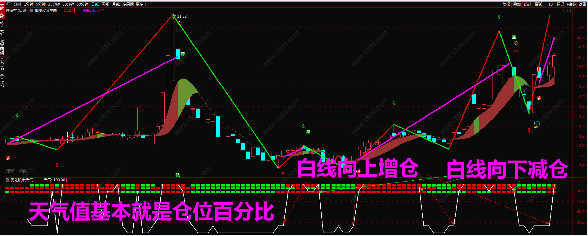 (优化股市天气副图。无未来函数,不漂移。适合上班簇和散户抄底中短线买卖持股使用。)