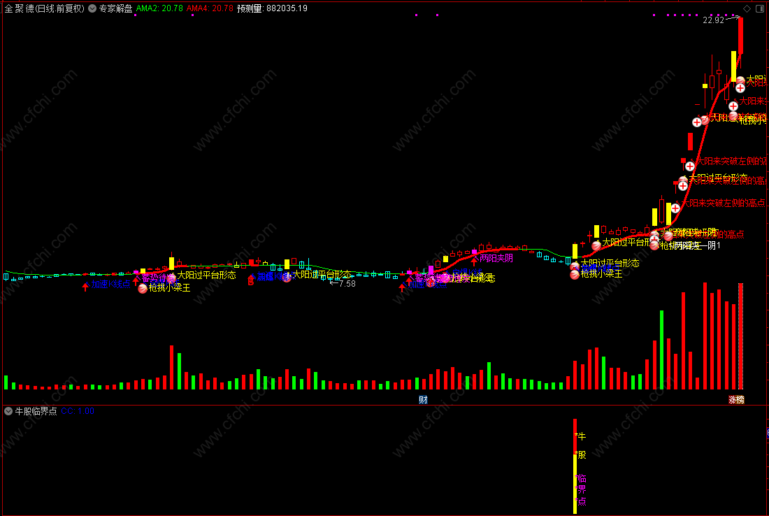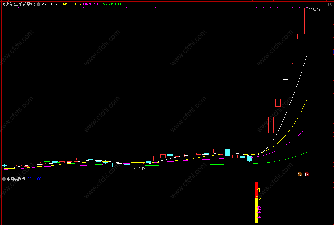 牛股临界点预警公式适合短线操作快进快出,每日预警信号和盘后选股平均在3~5只票左右;