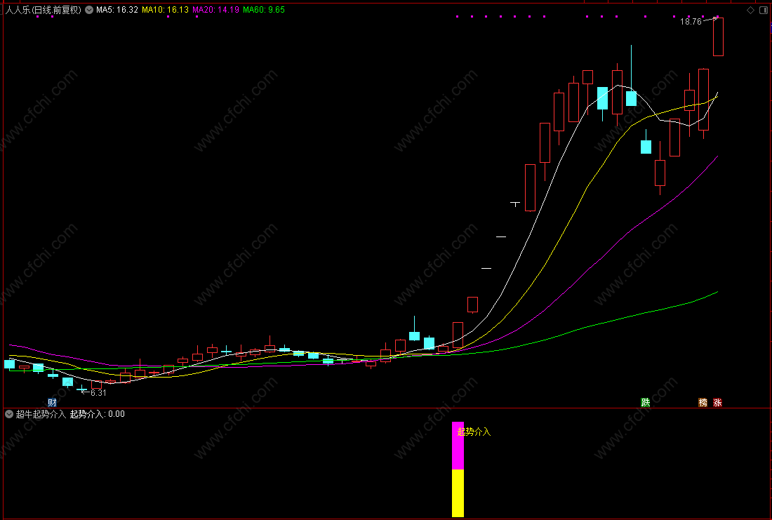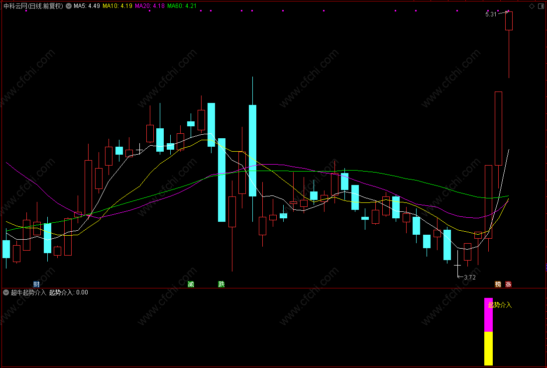 起势介入信号出现时,配合均线使用效果更佳;最好选择价格在20日均线附近的。