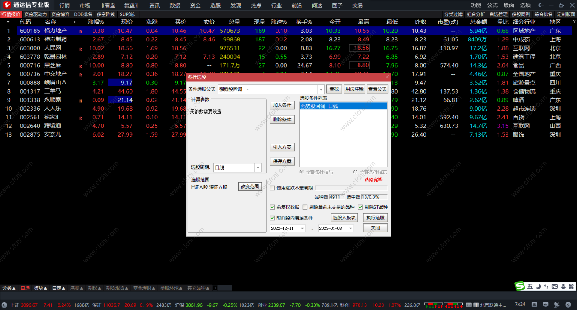1、条件选股公式(ctrl+t)