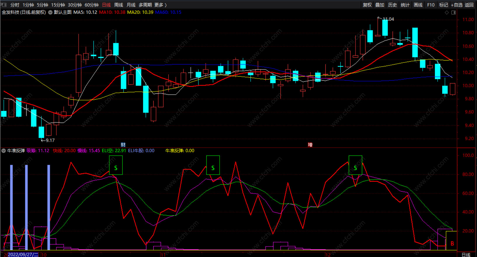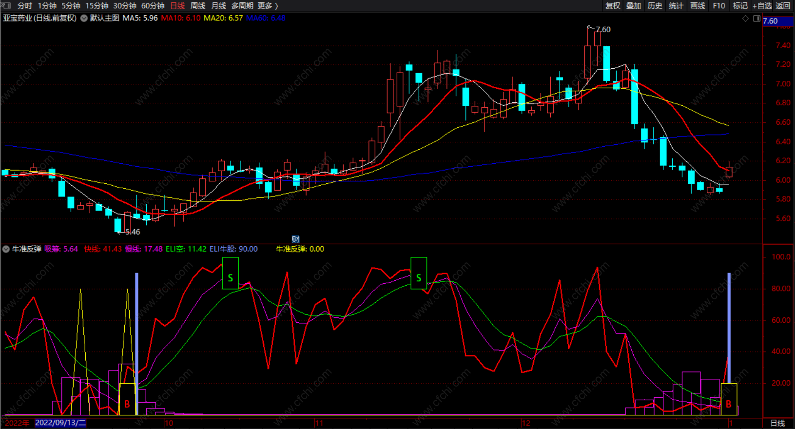 通达信牛准反弹副图指标,吸筹B点买入,获利S点卖出,简单波段操作