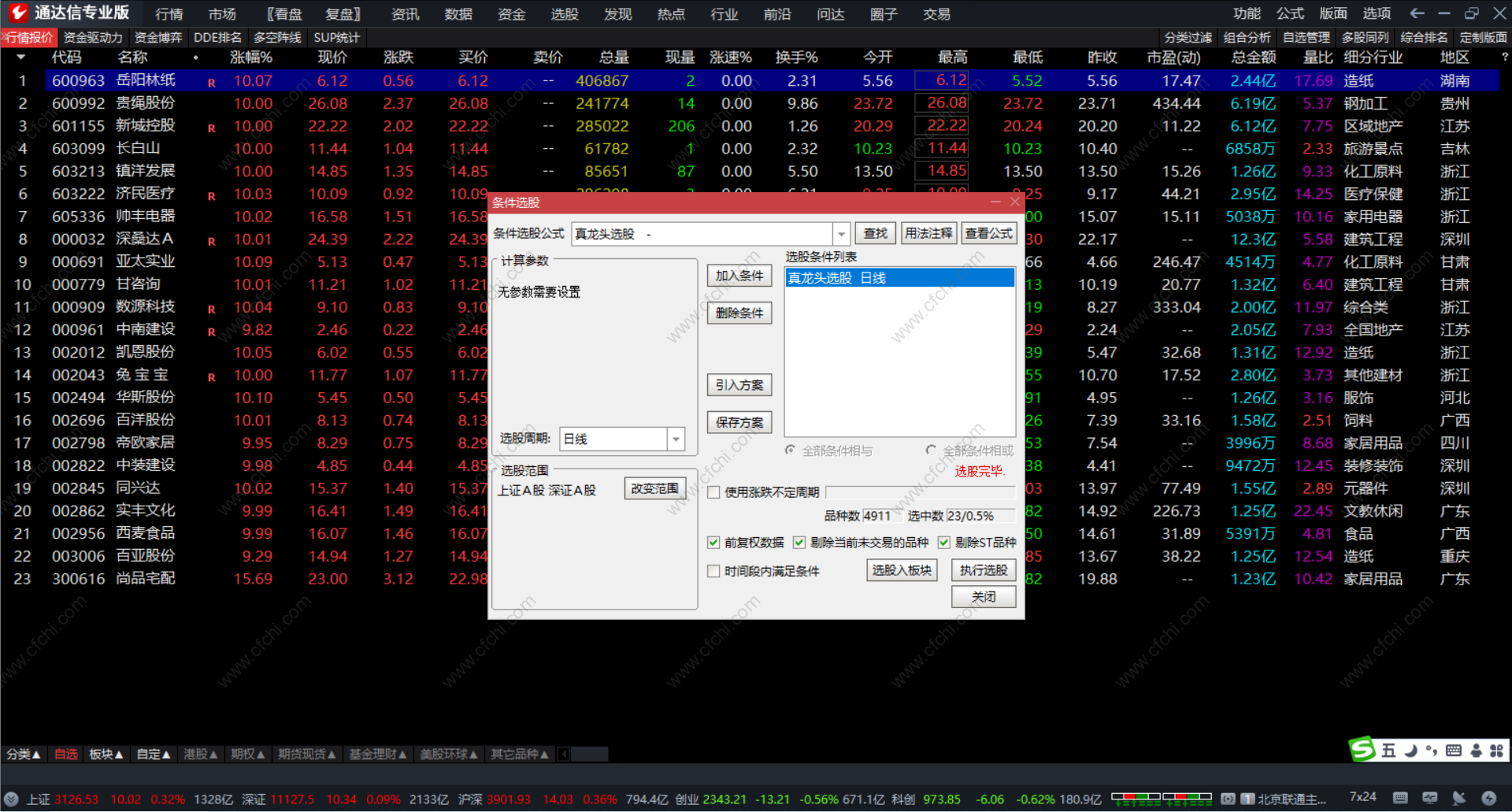 1、条件选股(ctrl+t)选出上涨板块个股!