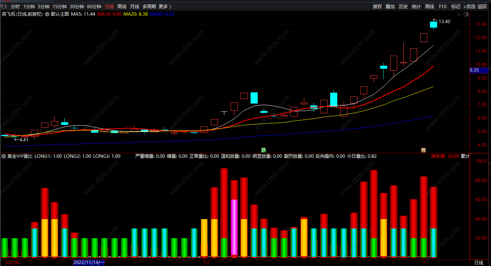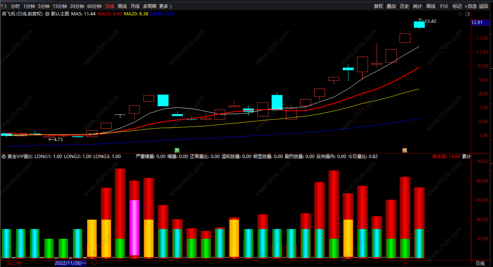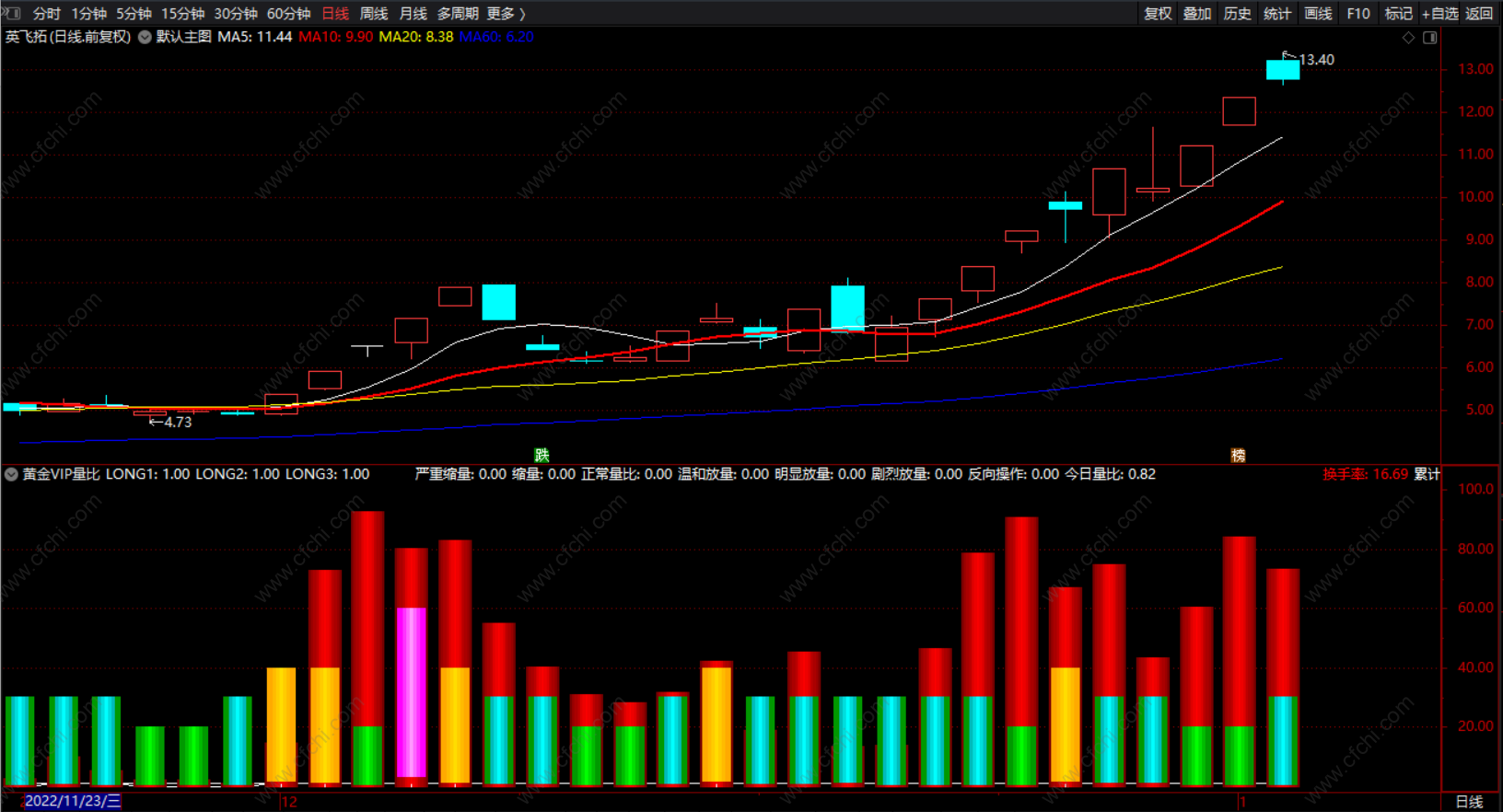 换手率:HSL,COLORRED,NODRAW;