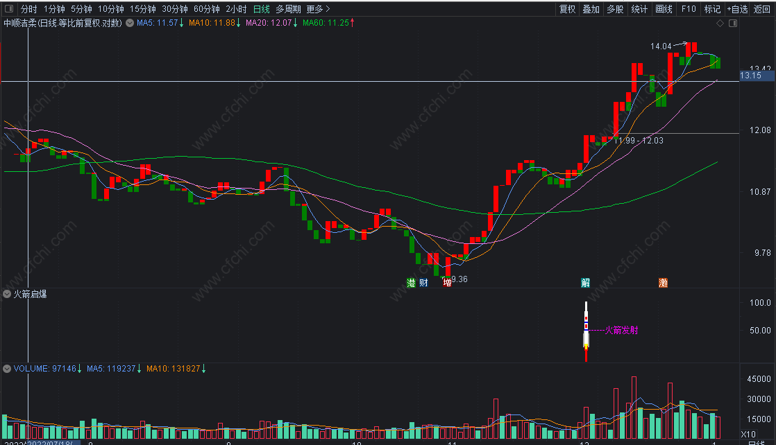 (通达信火箭启爆副图选股指标,买入加仓逃顶源码分享!)