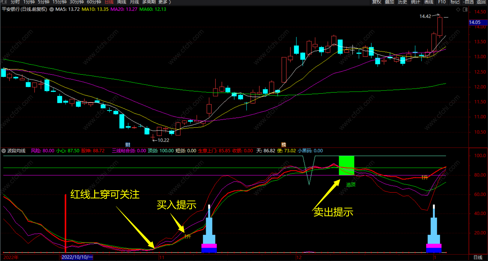 (波段均线低点买入卖出指标 通达信趋势看盘指标公式 副图 源码)