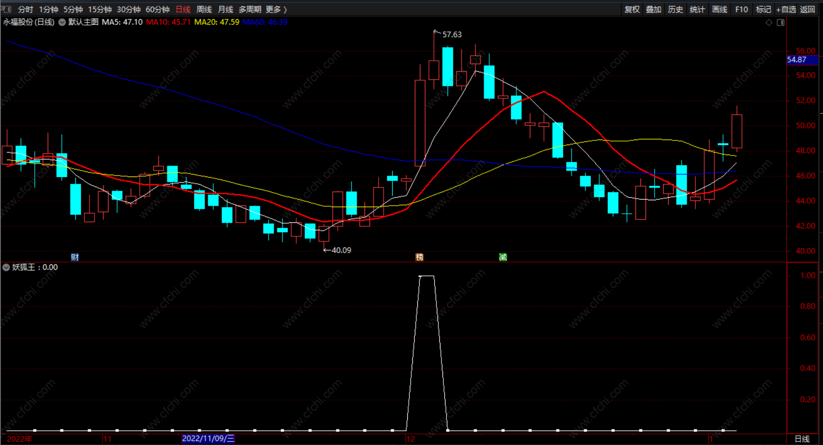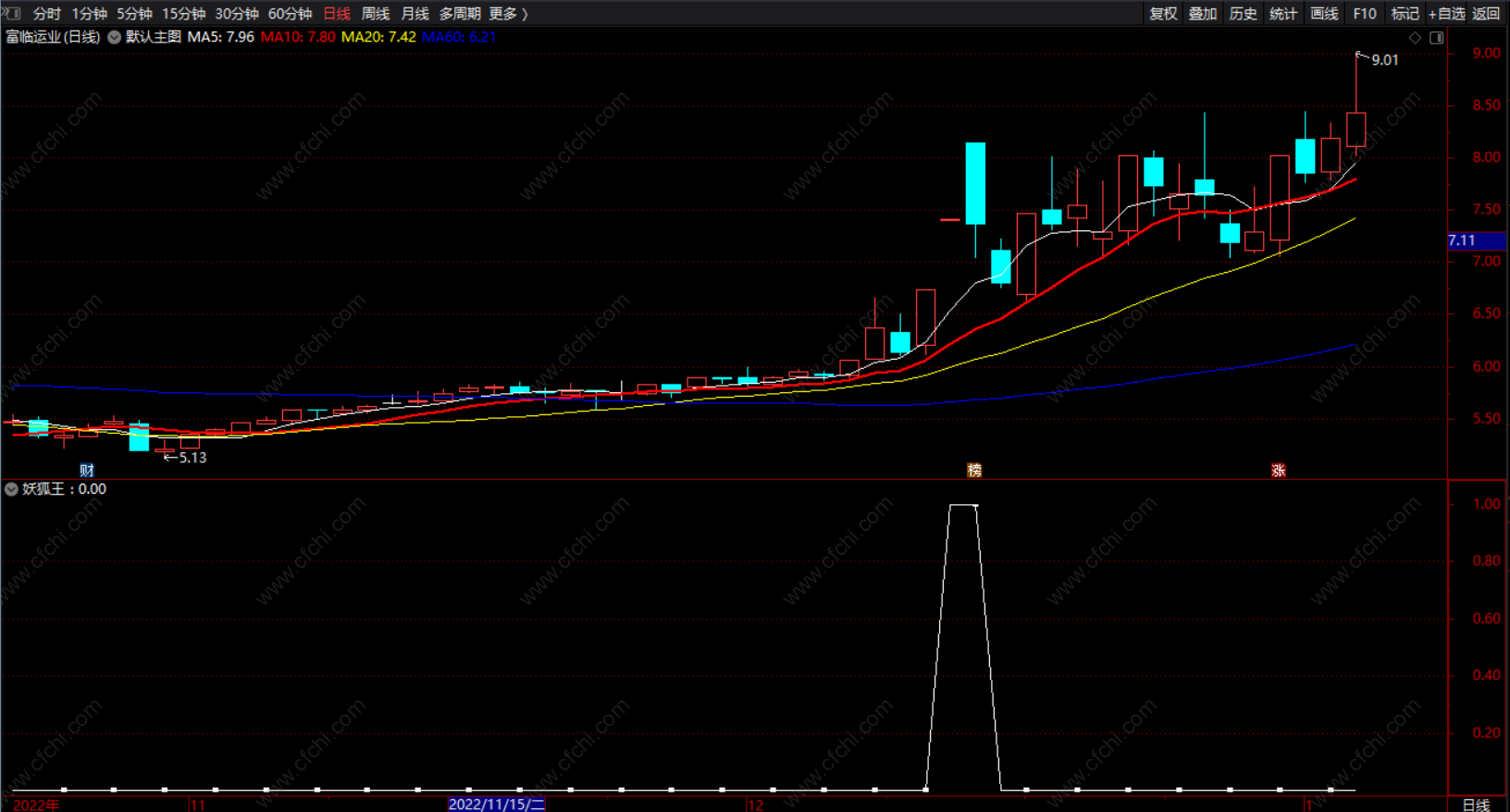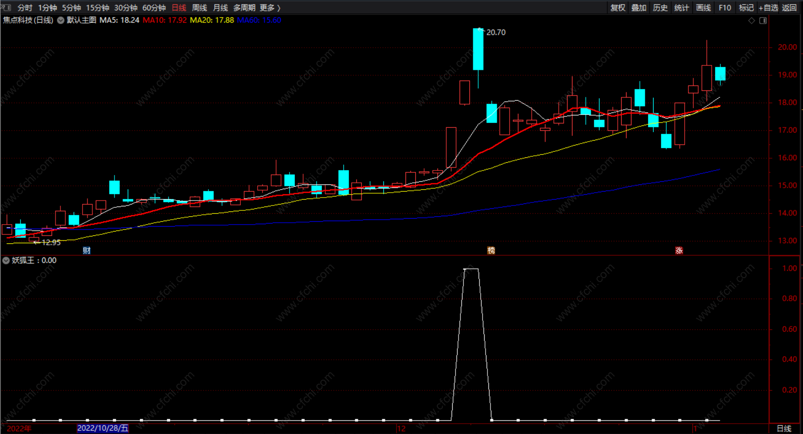 HX2:=((REF(妖狐,1) AND CROSS(C,飞狐线)) AND (C > 压力线));