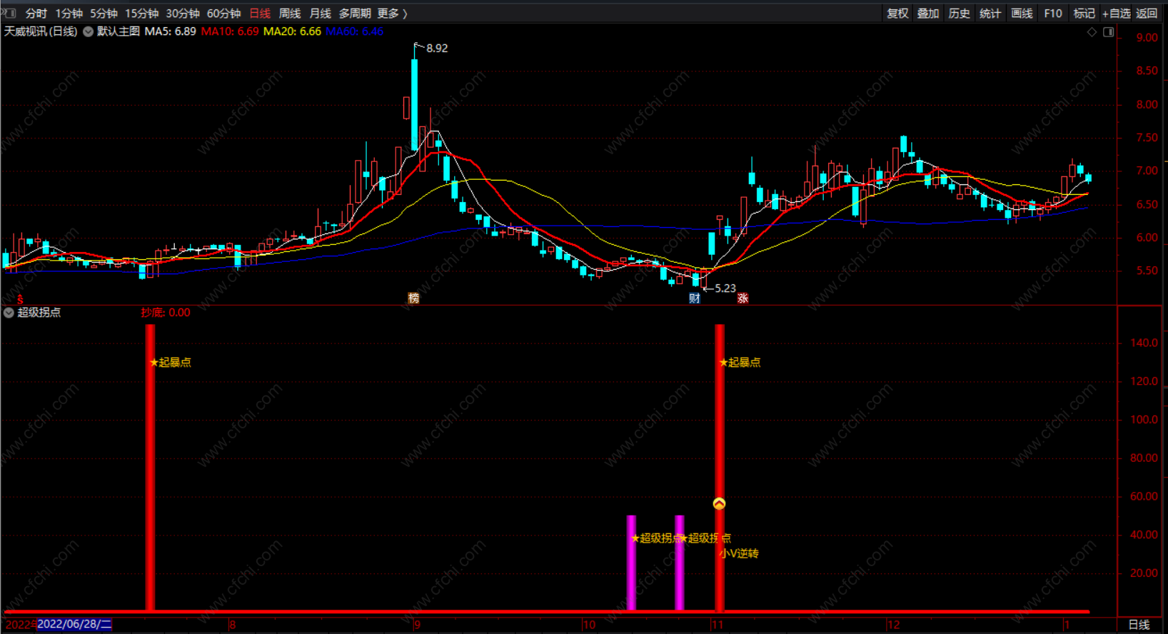 (抄底超级拐点起爆位 小V逆转 通达信短线股票买入时机 副图 无未来 源码)