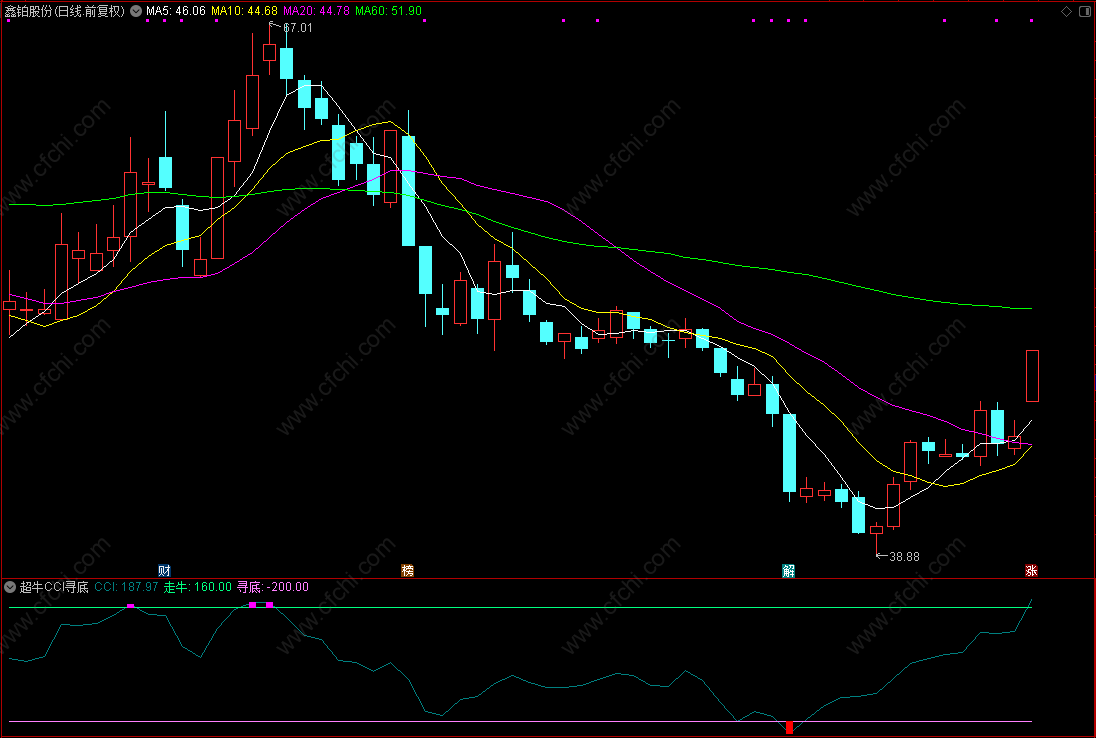 (通达信超牛CCI寻底副图指标,结合股价位于BOLL下轨捉起势票,源码分享)