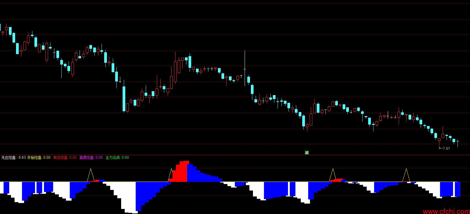 无庄控盘:IF(控盘<0,控盘,0),COLORWHITE,NODRAW;