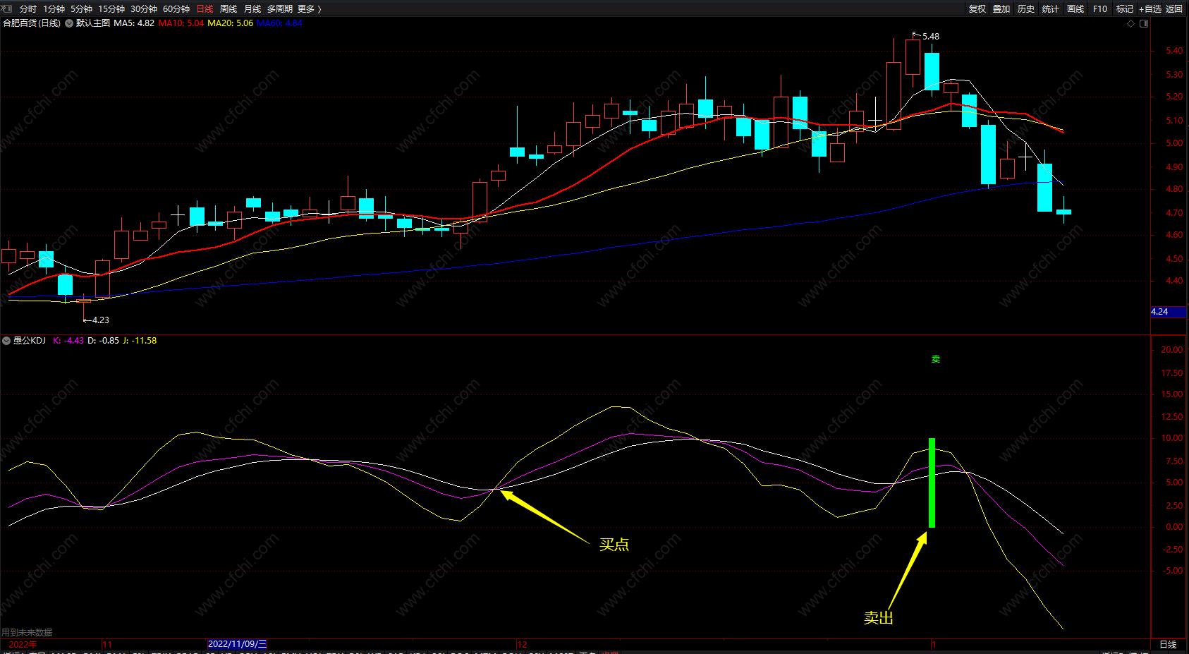 (愚公KDJ趋势公式 通达信KDJ买卖点指示副图 源码 )