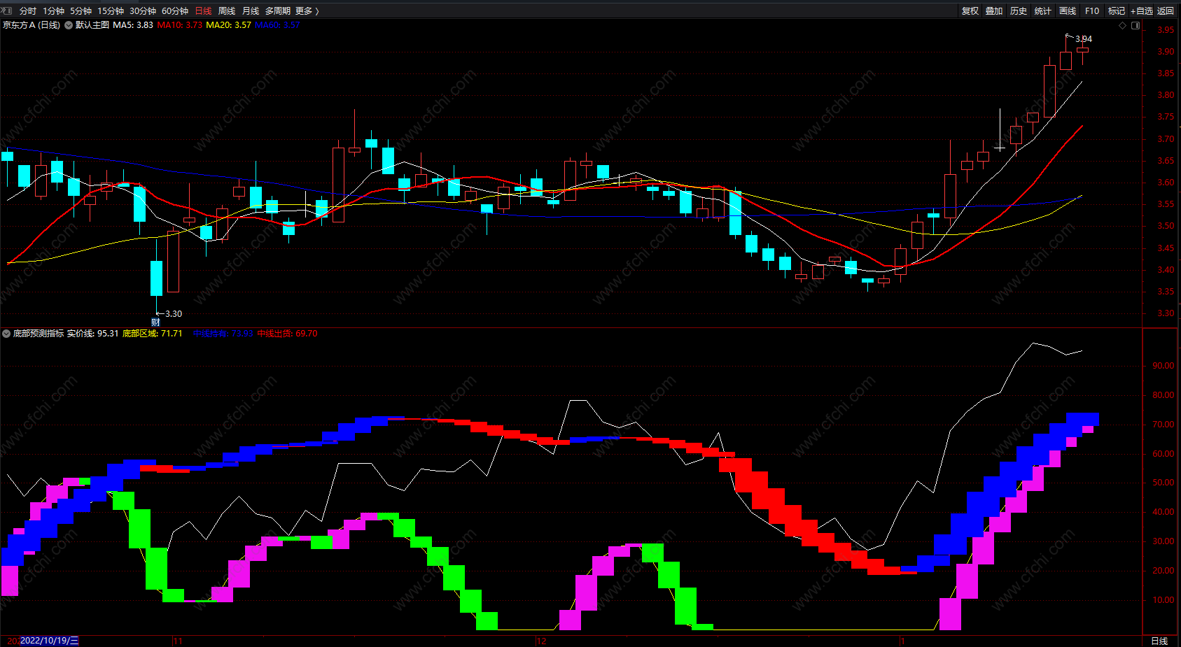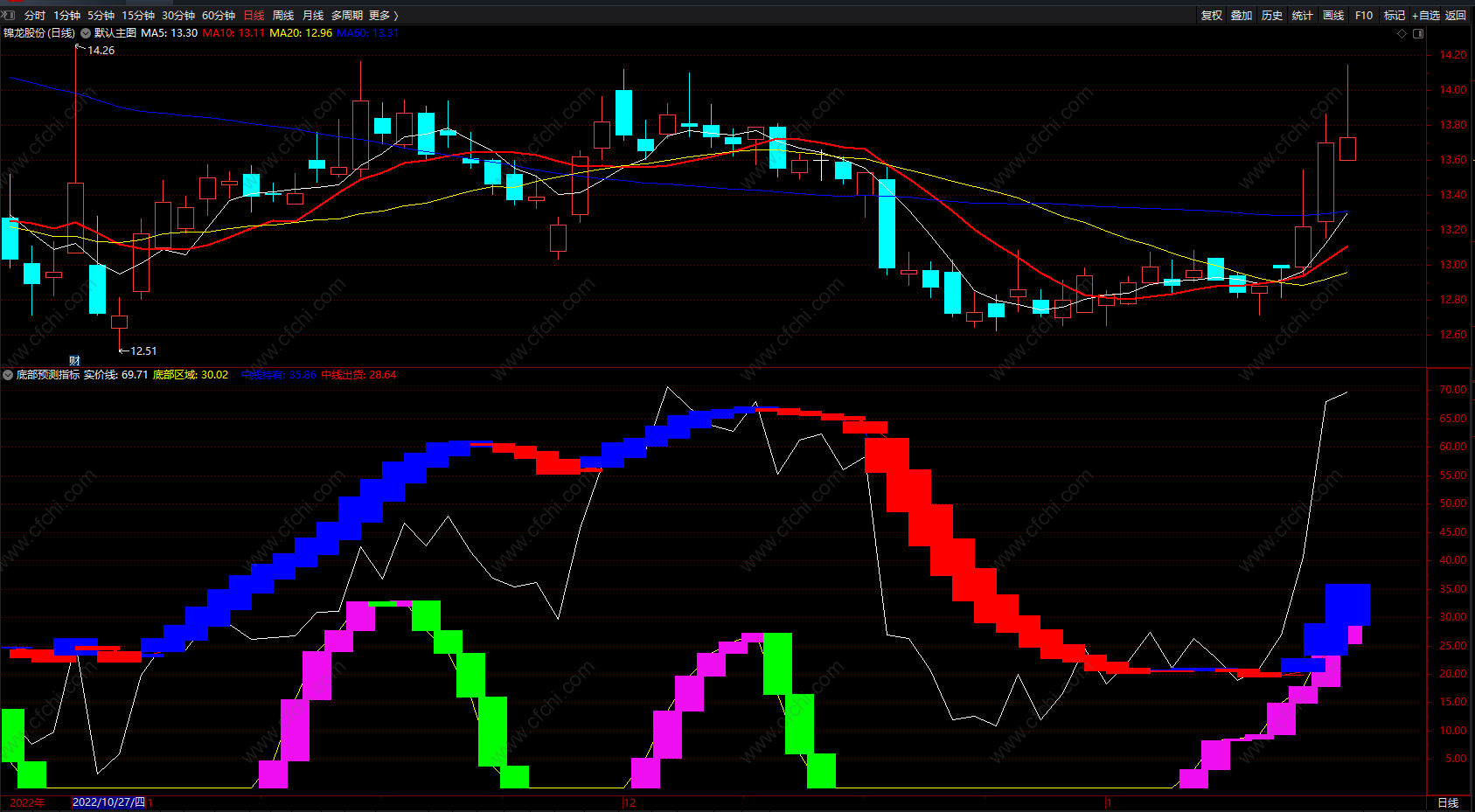 底部预测 在实战过程中,中线持有波段 蓝色波段持有 红色波段中线出货;