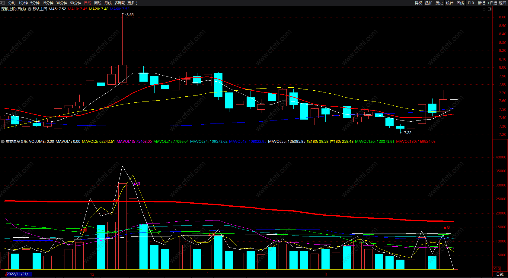 (成交量复合炮 通达信跟成交量有关的指标公式 源码 副图)