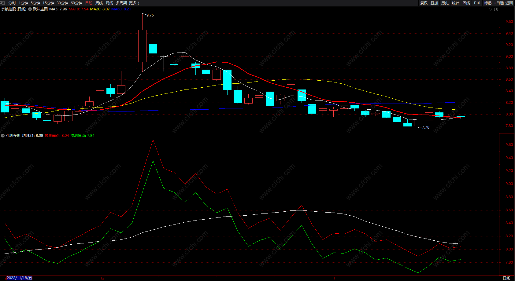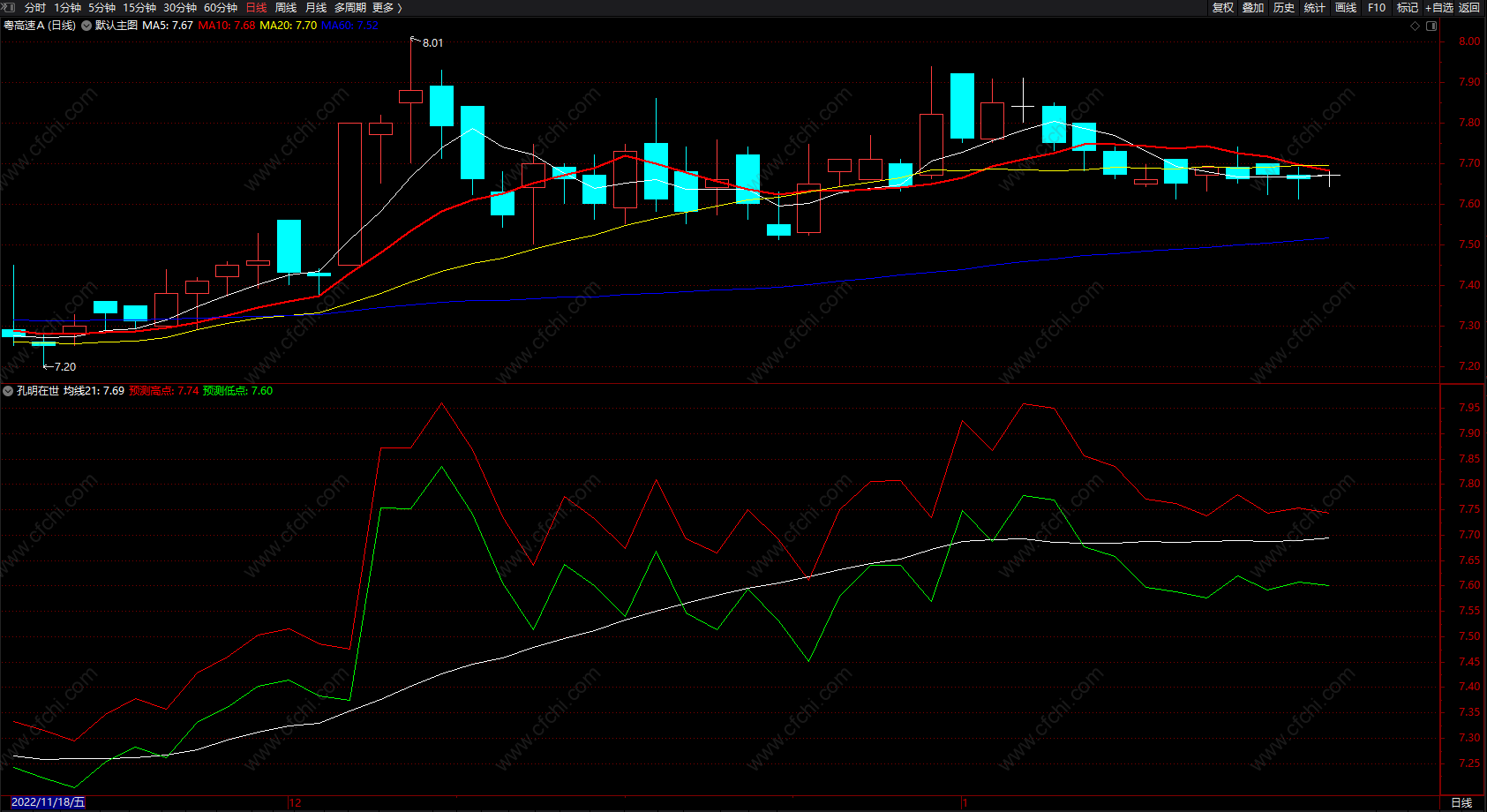 (孔明在世 通达信预测均线指标公式副图 源码 无未来)
