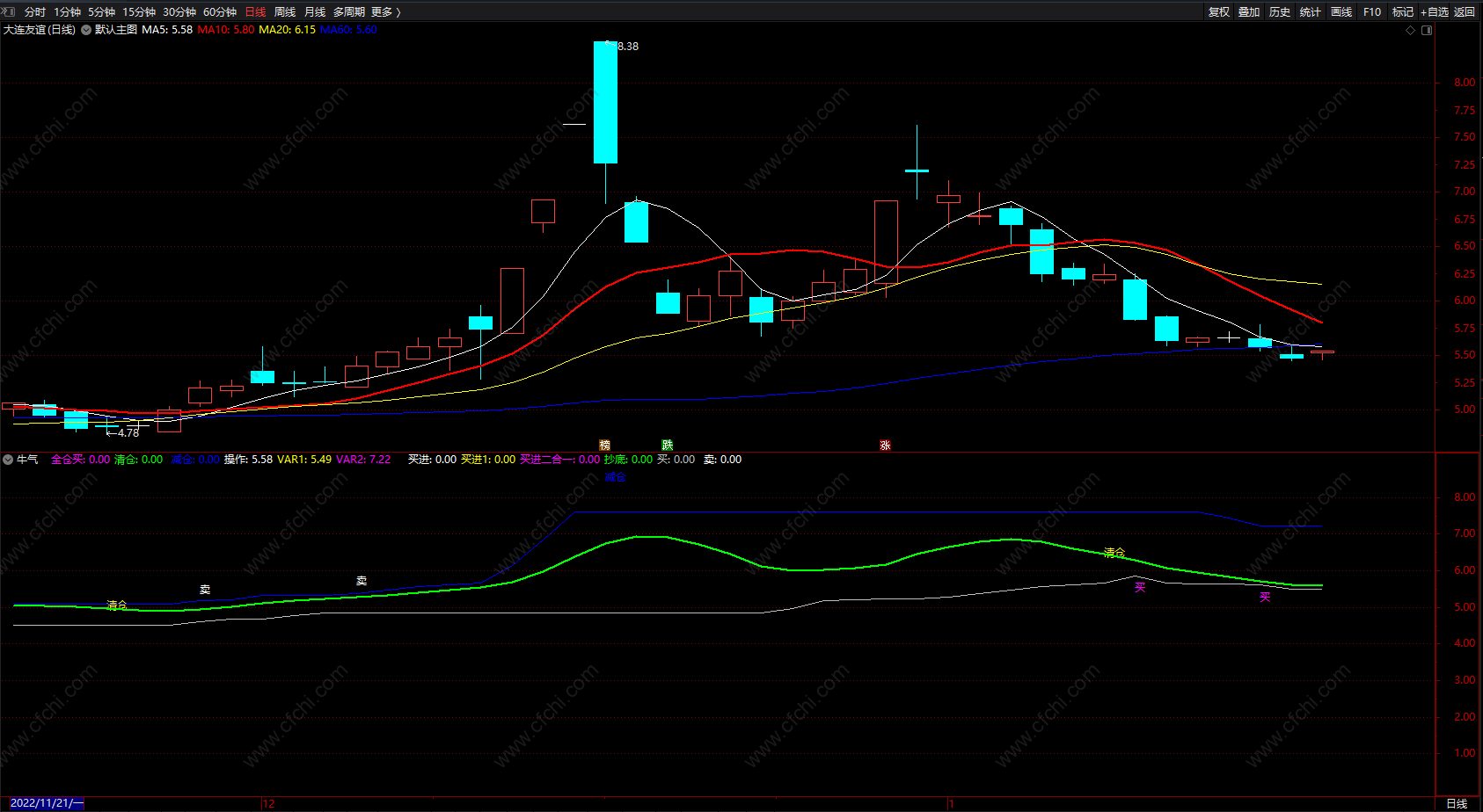 操作2:=MA(A7,5)*0.97;