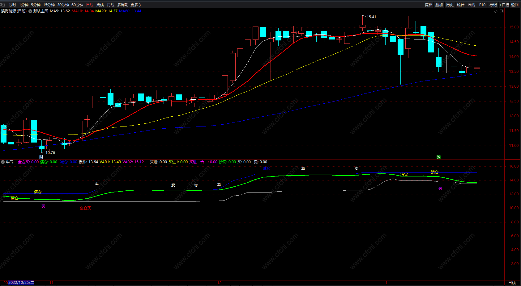 下线:=SMA(C,13.5,1);