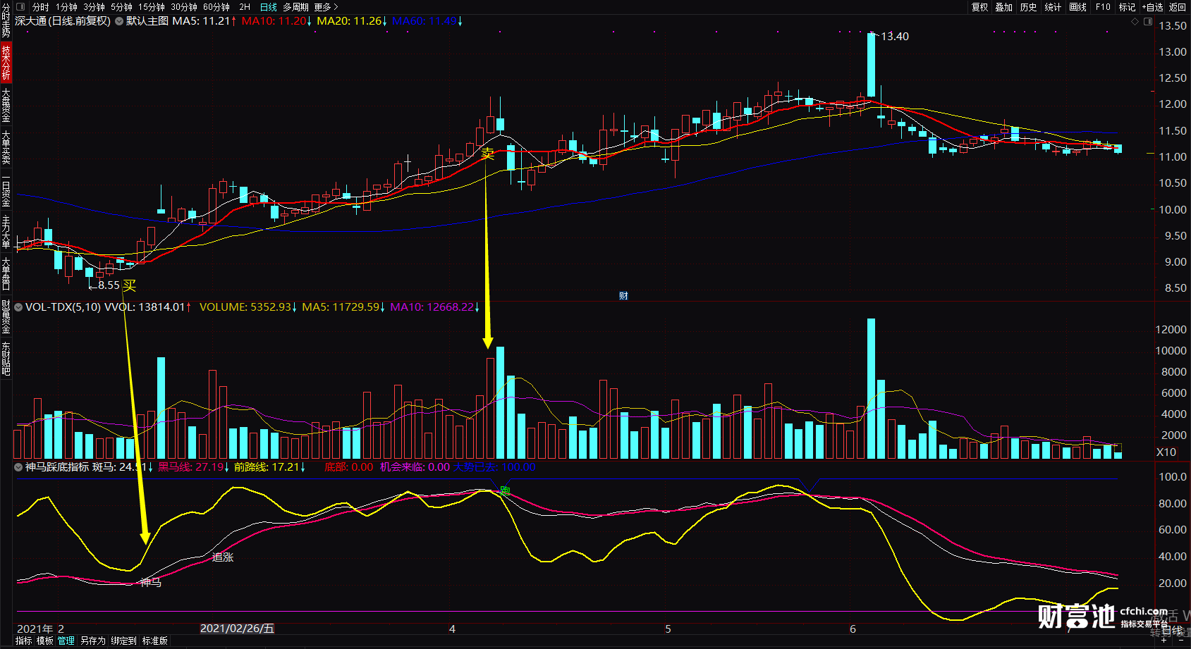 通达信神马踩底指标公式 抄底公式买卖信号副图指标