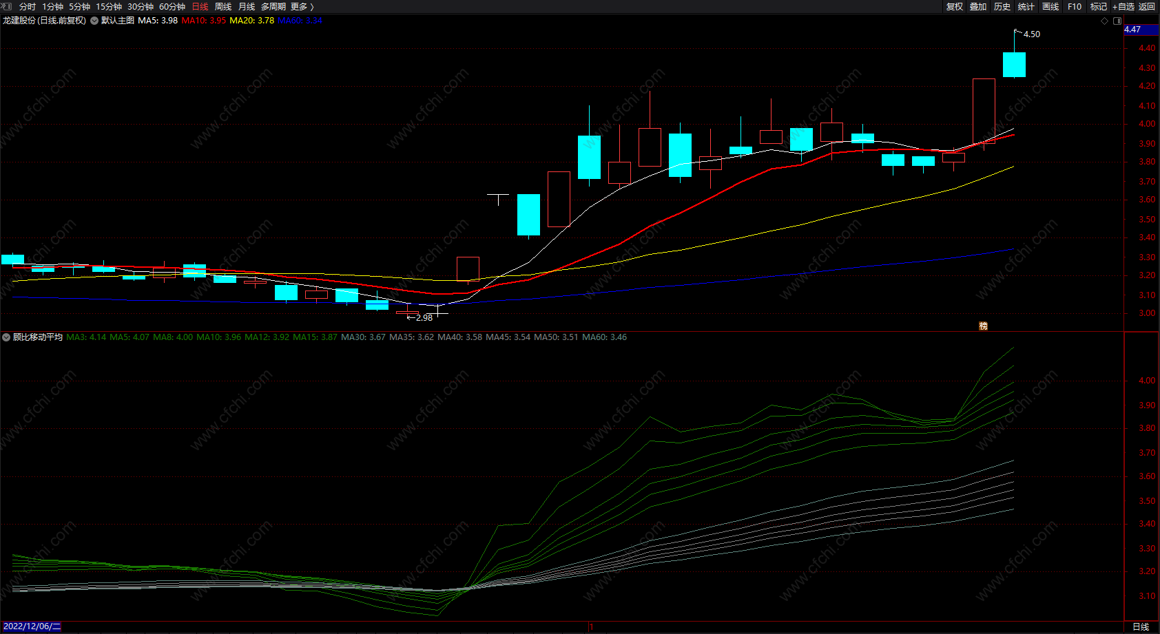 通达信顾比移动平均 波段趋势线指标源码 副图 无未来