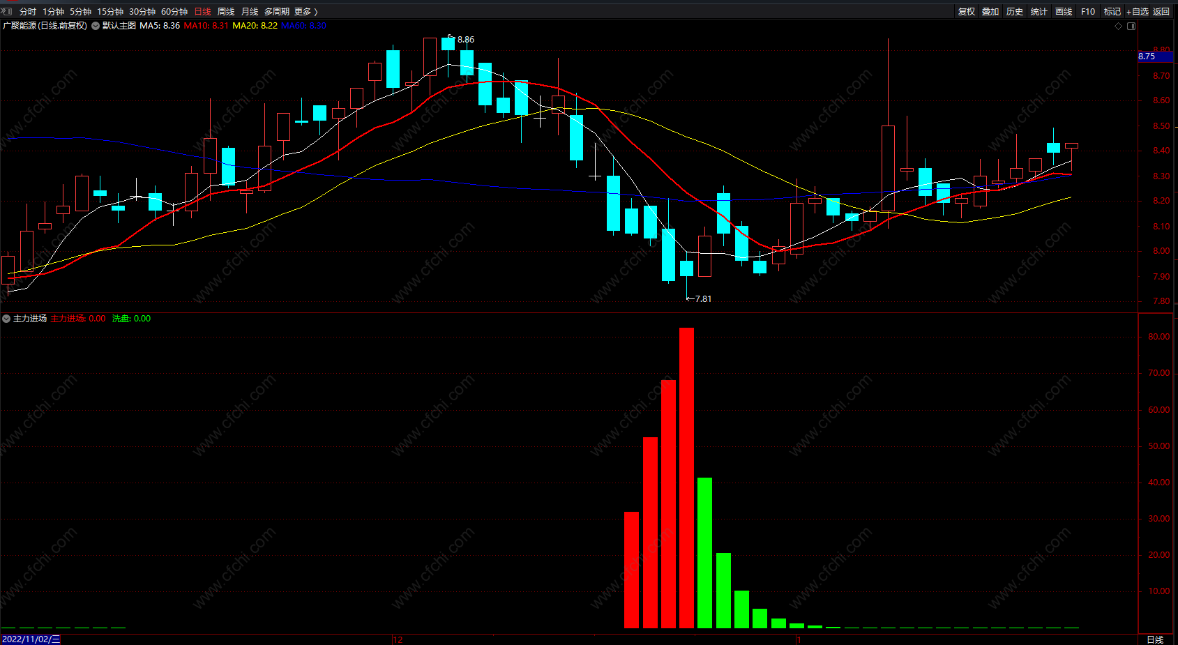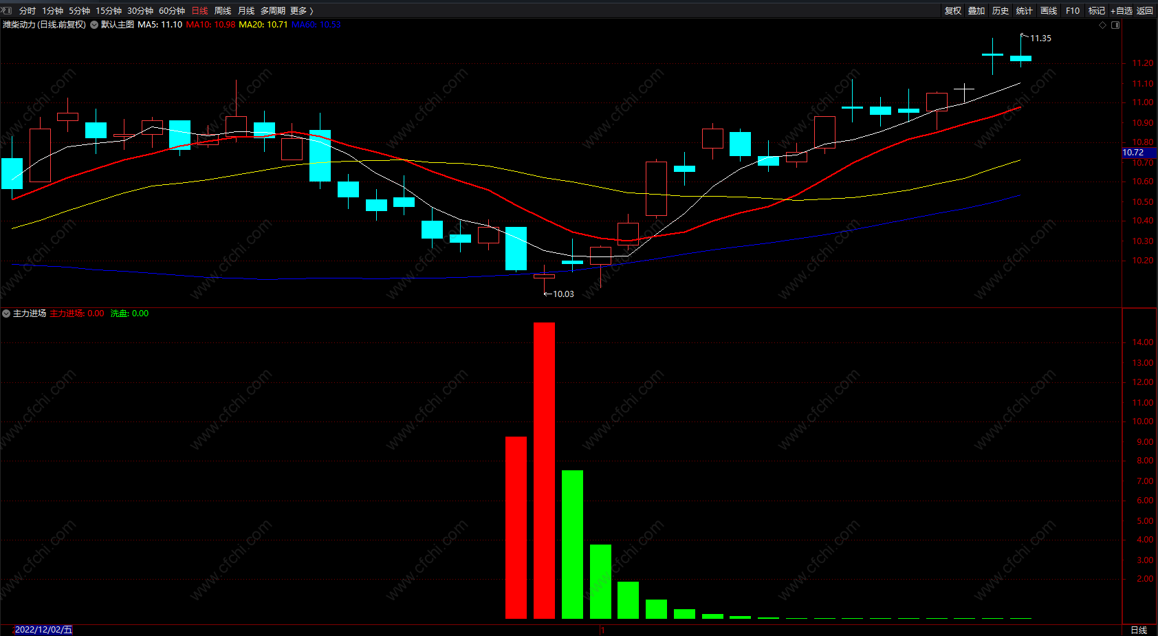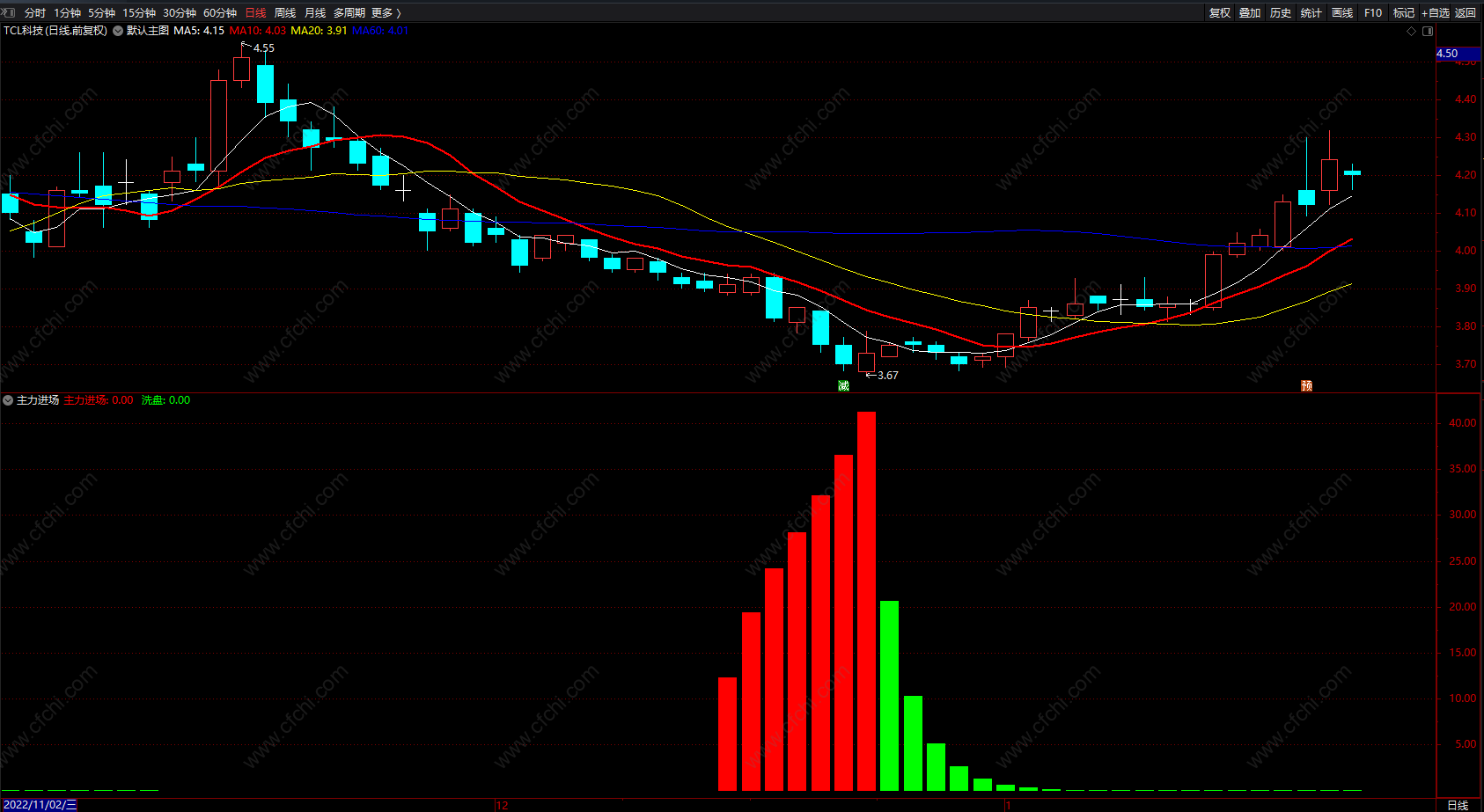 (主力进场 通达信红绿柱提示主力入场洗盘指标公式 副图)