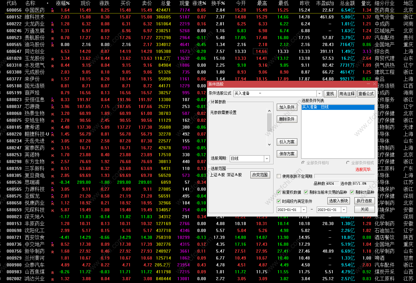 指标出票较多,出票后需要手动筛选,找筹码结构好的,集中的个股。
