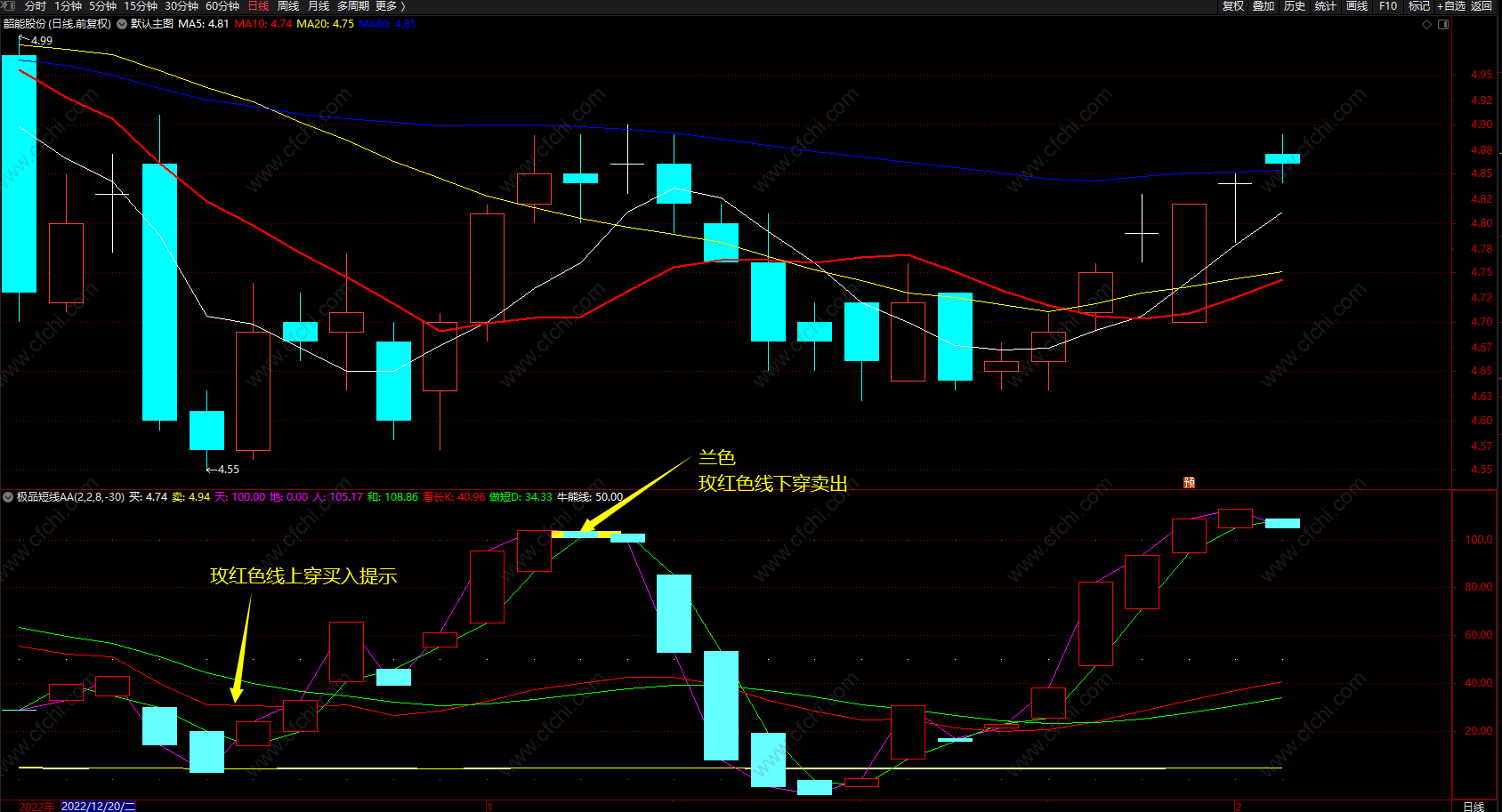 (超级短线王指标公式——极品短线AA 通达信买卖提示指标公式 副图 源码)