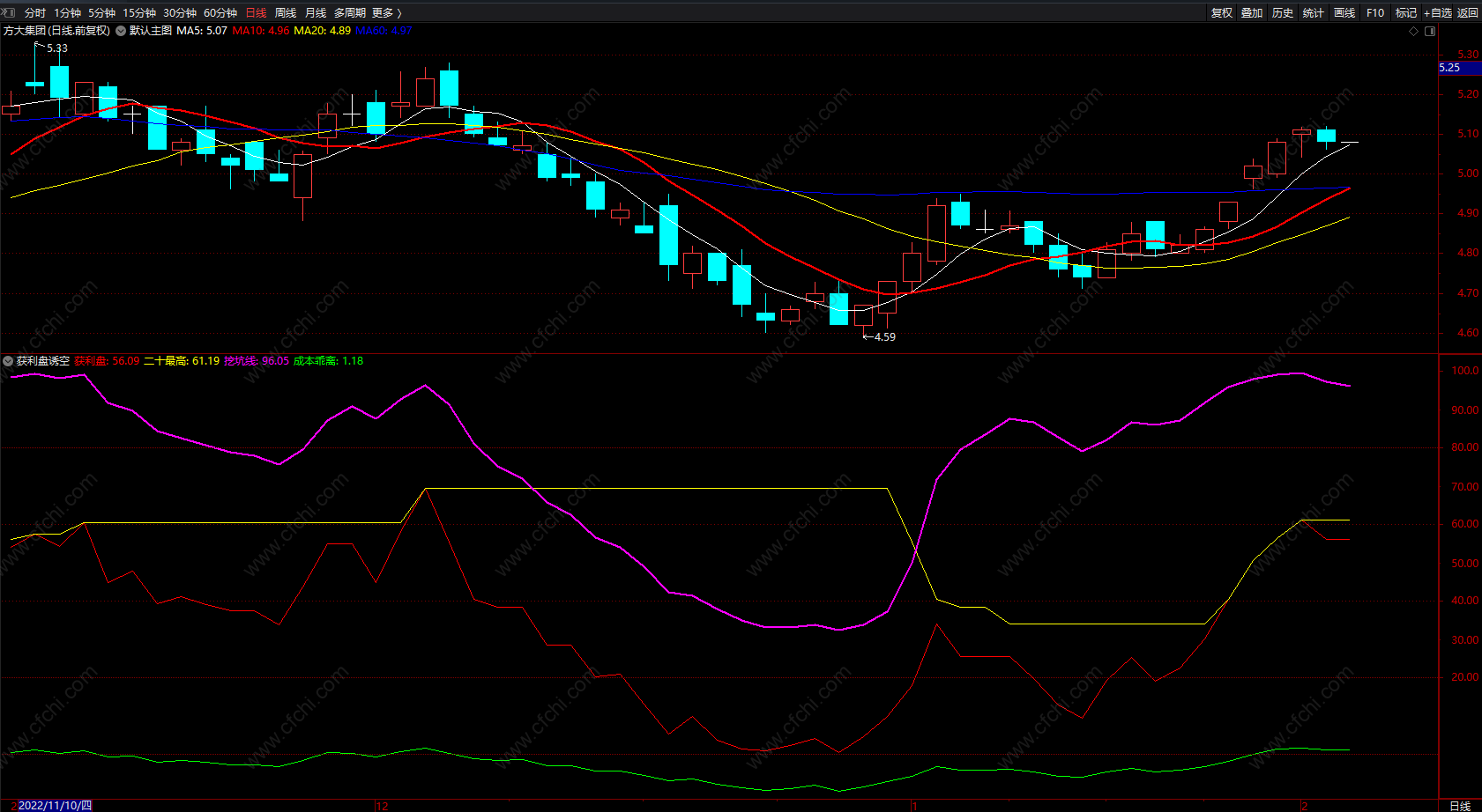 获利盘诱空 通达信多空趋势线指标公式 副图 源码