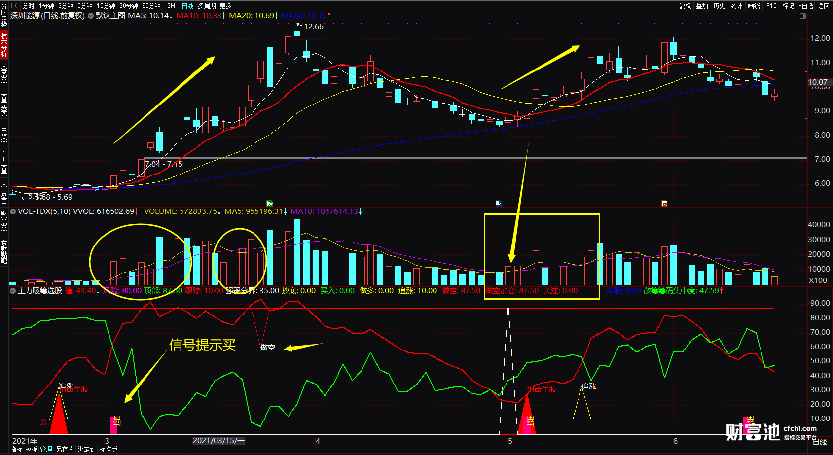 理论总结:看着副图中的凸起图形来买卖股票就行了。