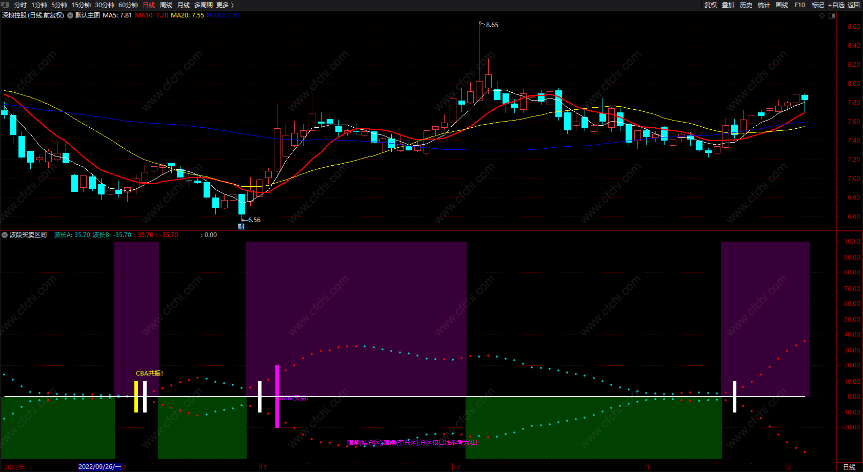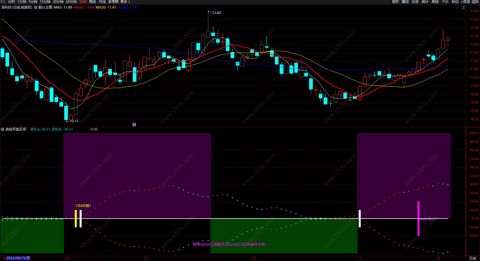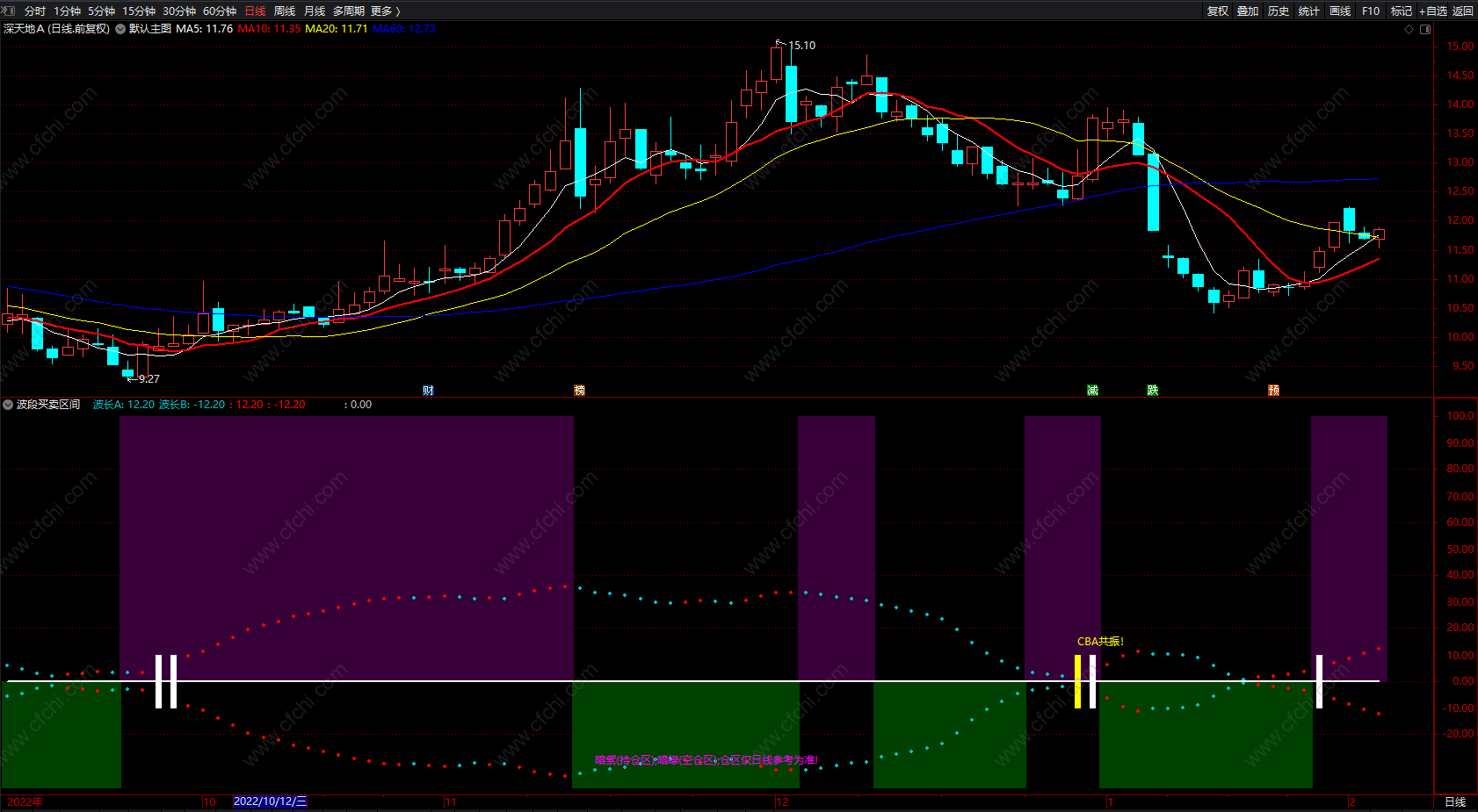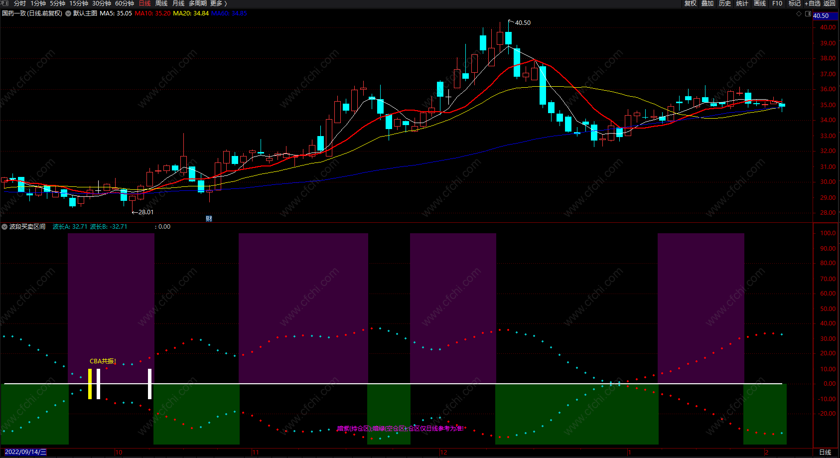 (通达信资金流向趋势指标公式 CBA共振 副图 源码 )