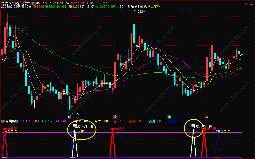 (通达信超牛月周共振T副图指标,已简化源码分享)