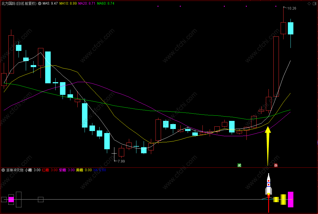 (通达信派神冲天炮副图选股指标,捕捉最强拉升段,源码分享)