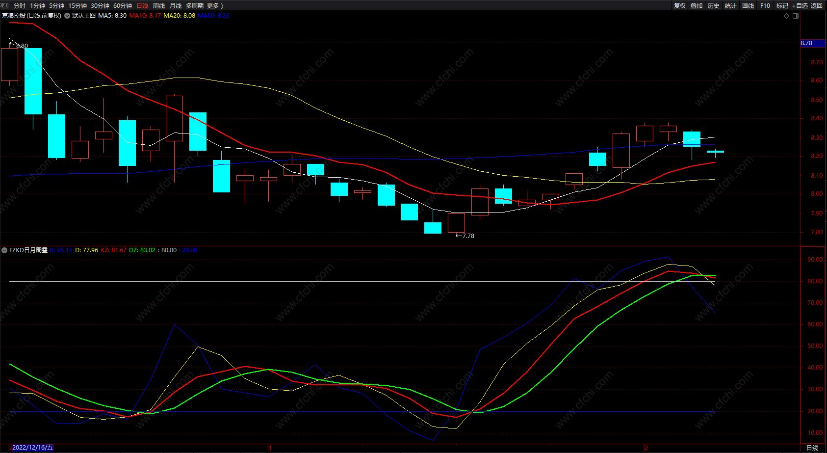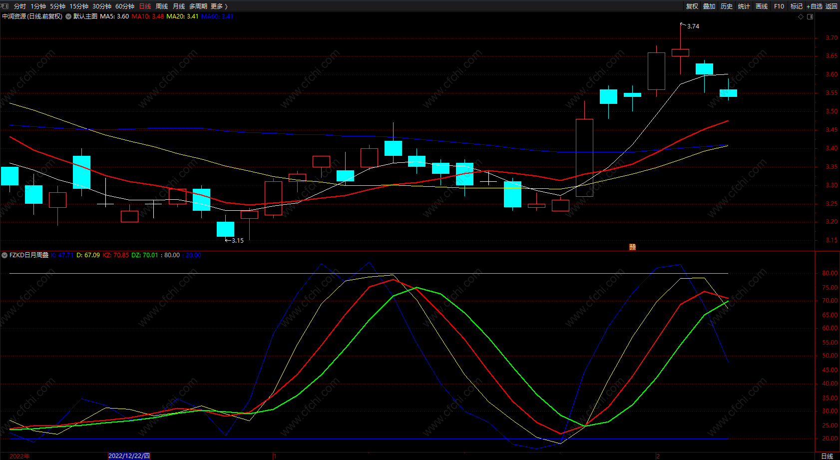 FZKD日月周叠 通达信趋势线买卖提示指标公式 副图 源码