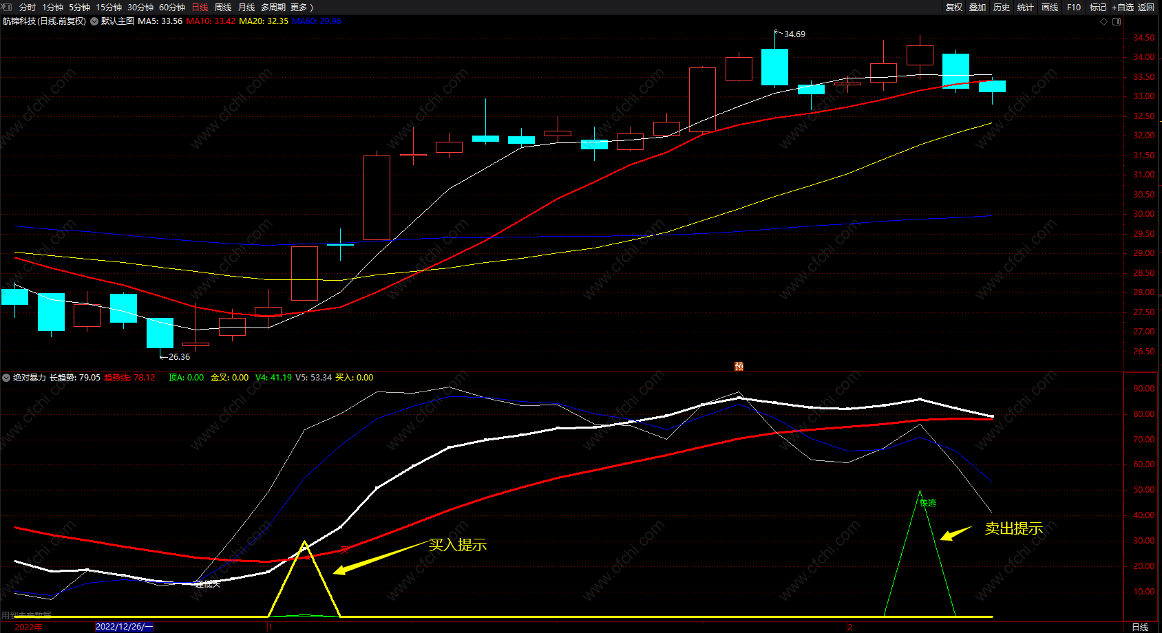 指标类工具,仅供投资者参考,使用时请结合其他技术指标、成交量、大盘走势等多因素进行综合判断。