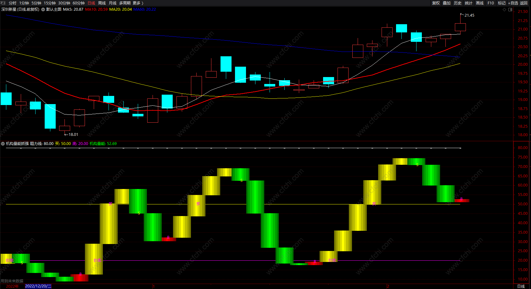"B"提示上涨,“抄底”买入提示;“S”绿色波段,卖出提示!