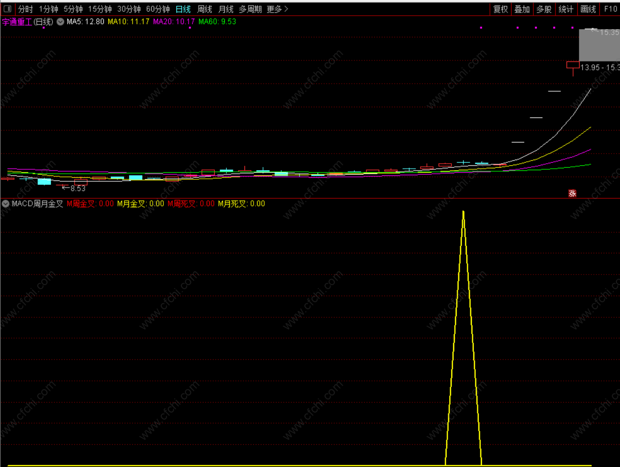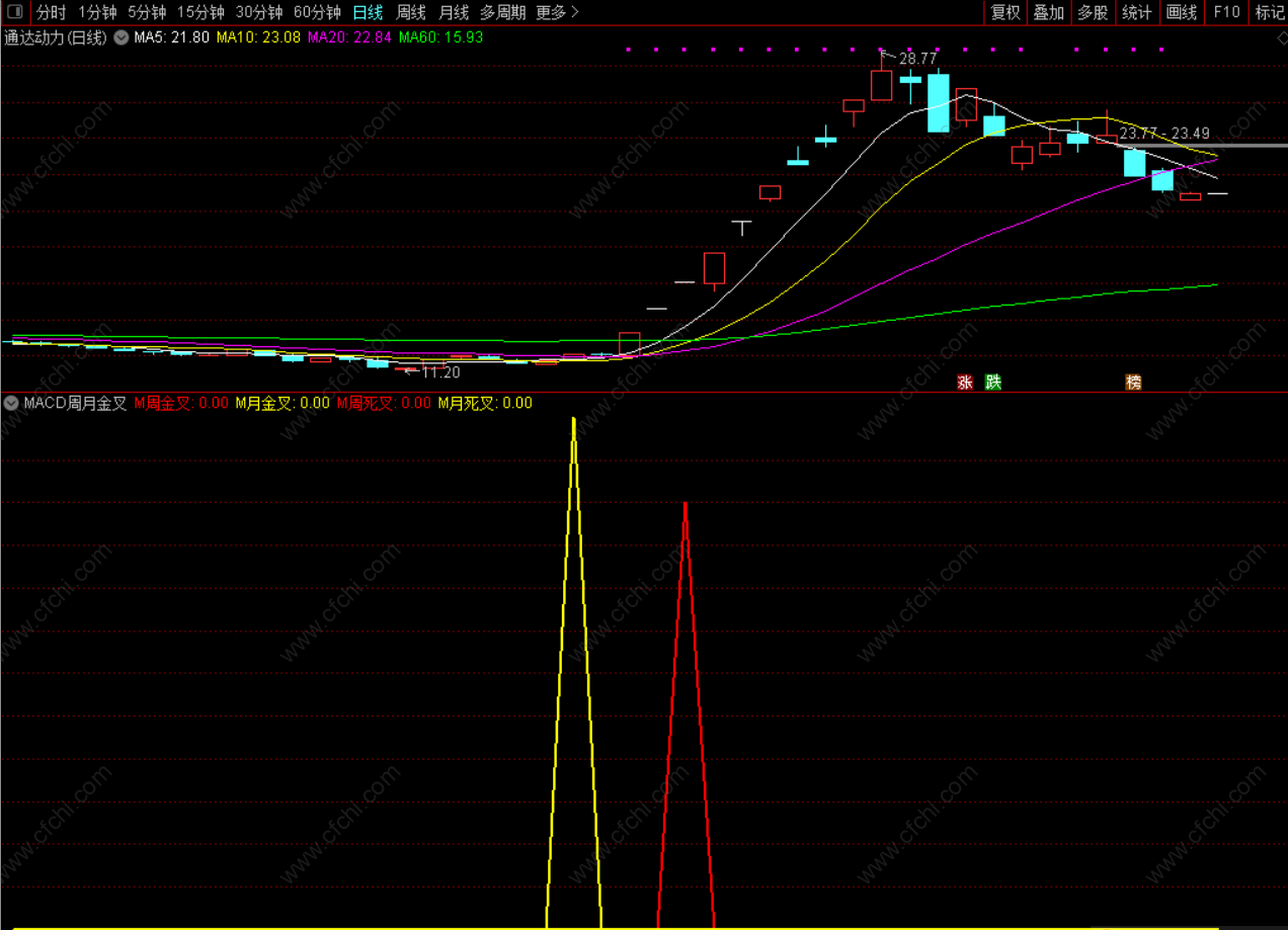 (通达信【macd周月金叉】副图指标, 大周期级别的MACD金叉往往是主升行情的必备条件 )